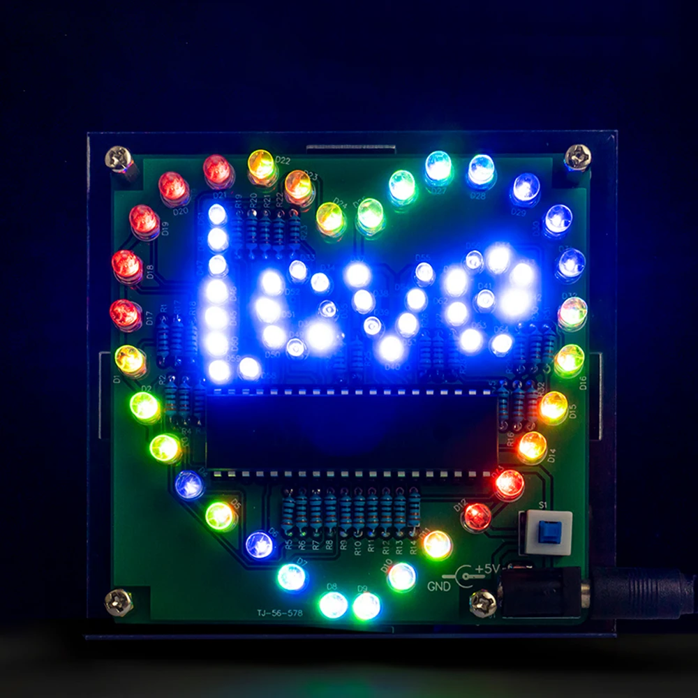 DIY colorido amor en forma de corazón luces que fluye Kit electrónico MCU PCB DIY Kit de práctica de soldadura luz de atmósfera intermitente DC 5V