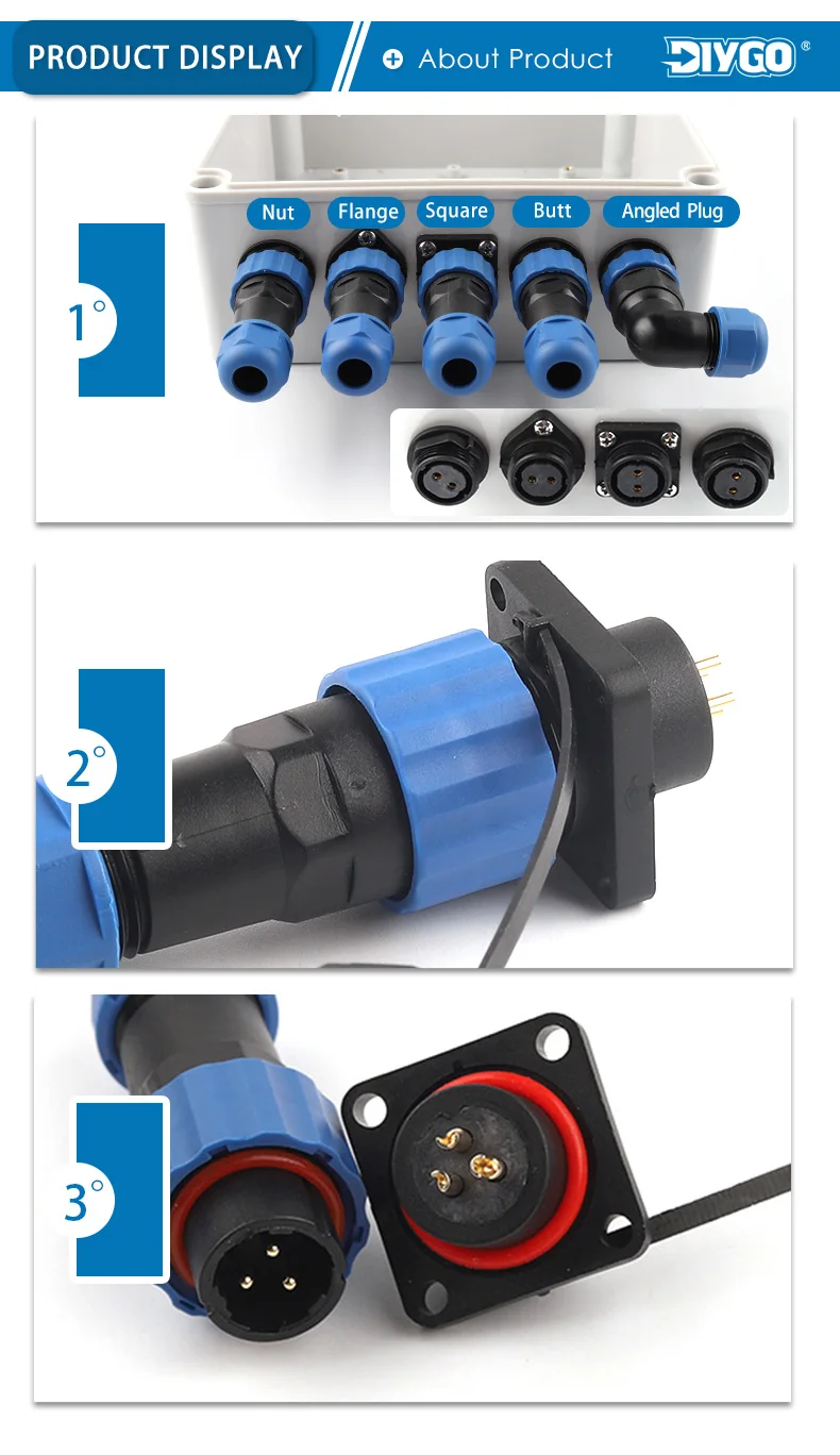 DIY GO macho y hembra acoplamiento aviador enchufe de aviación tipo cuadrado SP16-2 3 4 5 6 7 9 pines Cable eléctrico bloque de terminales a tope