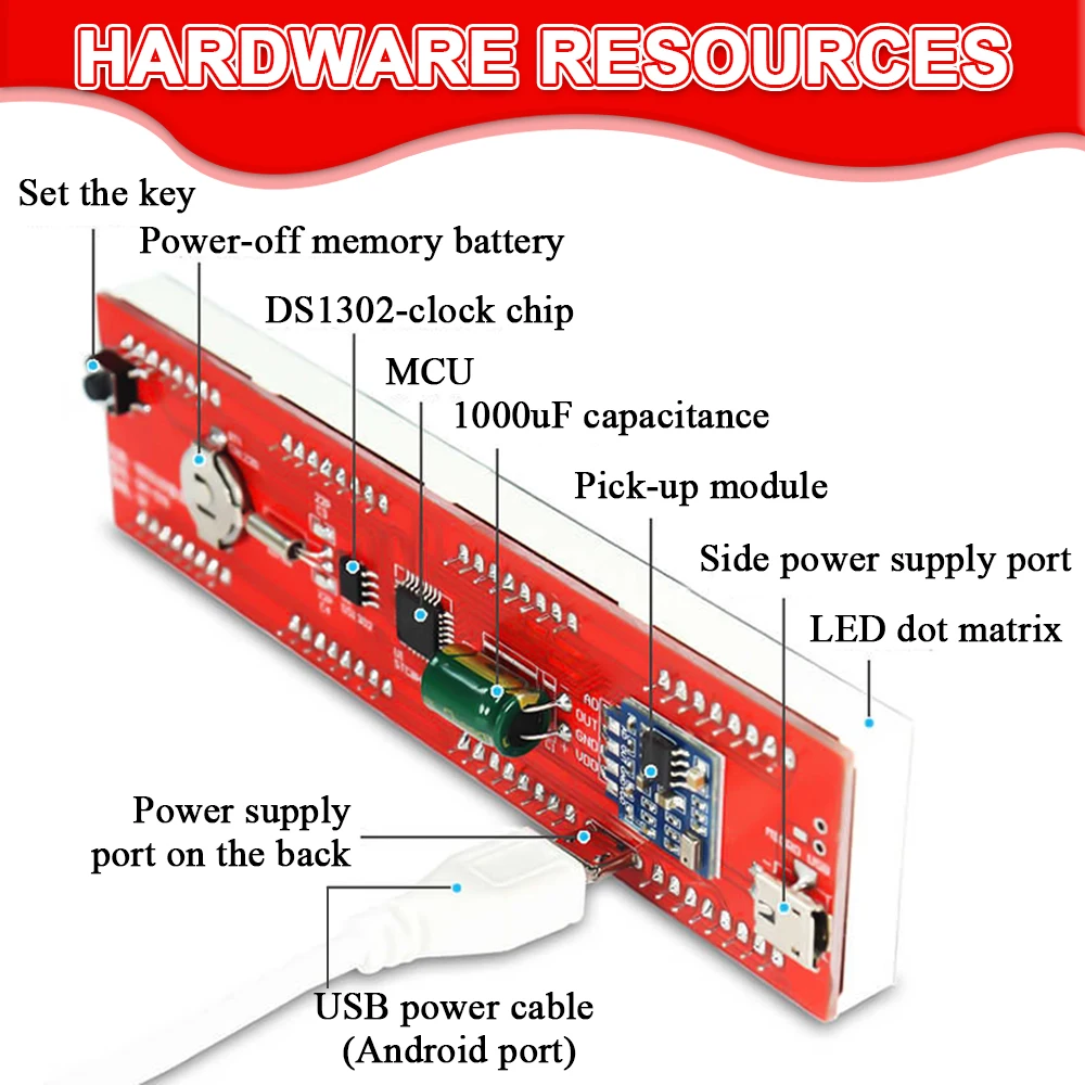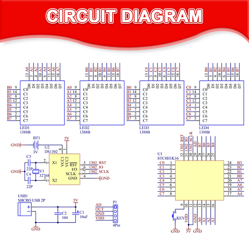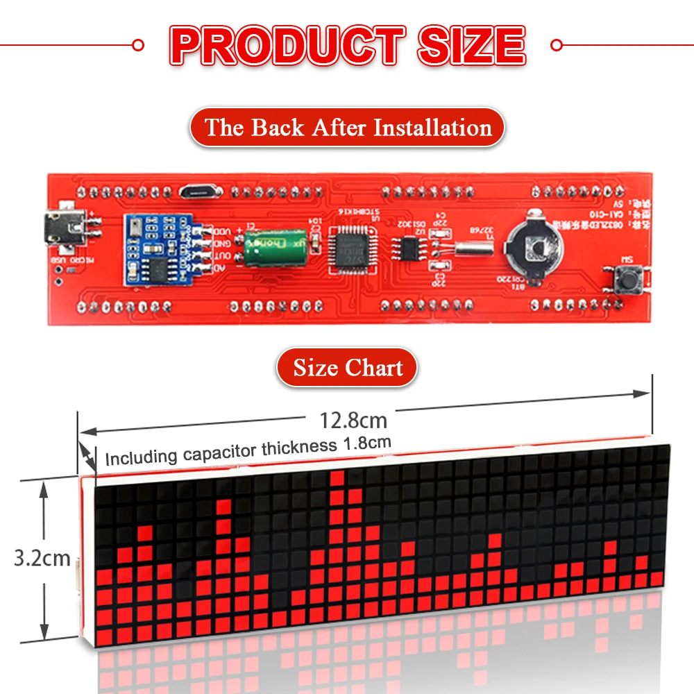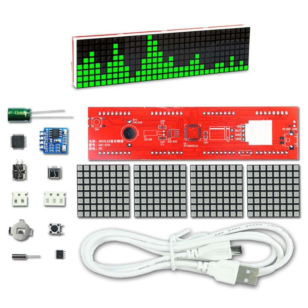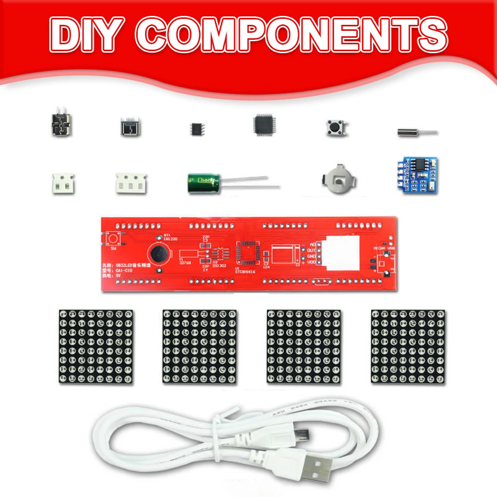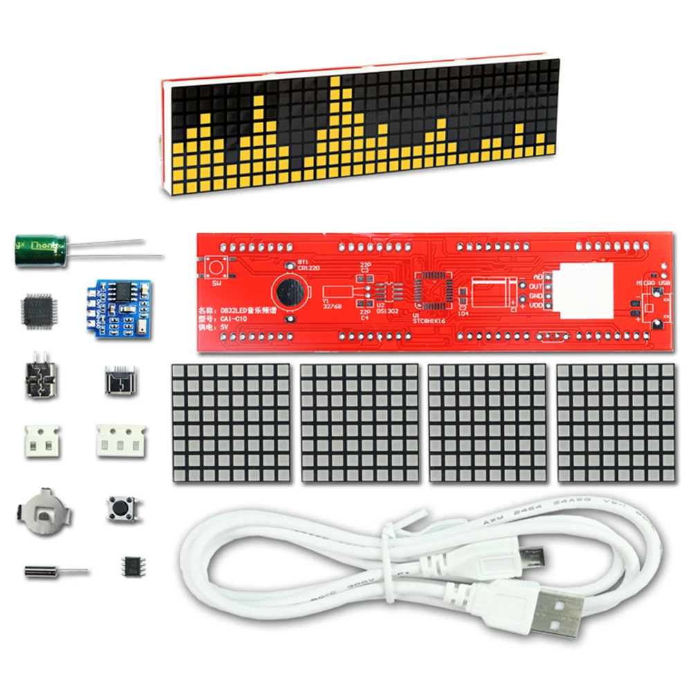 DIY LED espectro musical DS1302 reloj de matriz de puntos Kit de soldadura electrónica luz de ritmo alimentación USB DC5V con Micro Cable