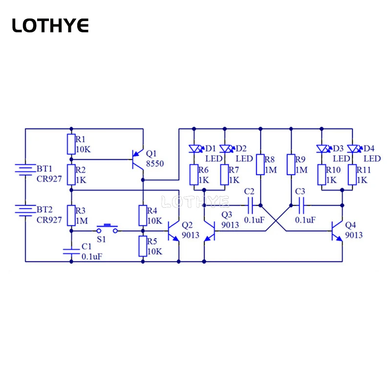 La batería de celda de moneda se utiliza para el suministro de energía, y el microcontrolador entra automáticamente en un bajo consumo de energía cuando se apaga el giroscopio de la batería. Cuando se presiona el interruptor, El LED se enciende.