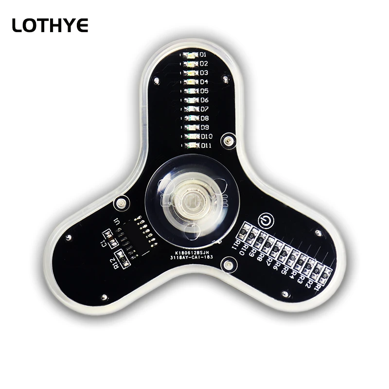 El giroscopio utiliza un microordenador de un solo chip para controlar 12 diodos emisores de luz para parpadear a su vez. El tiempo de parpadeo de cada LED y la secuencia de parpadeo son controlados por el microordenador de un solo chip. Cuando el giroscopio electrónico gire, aparecerá el patrón y el texto correspondientes.