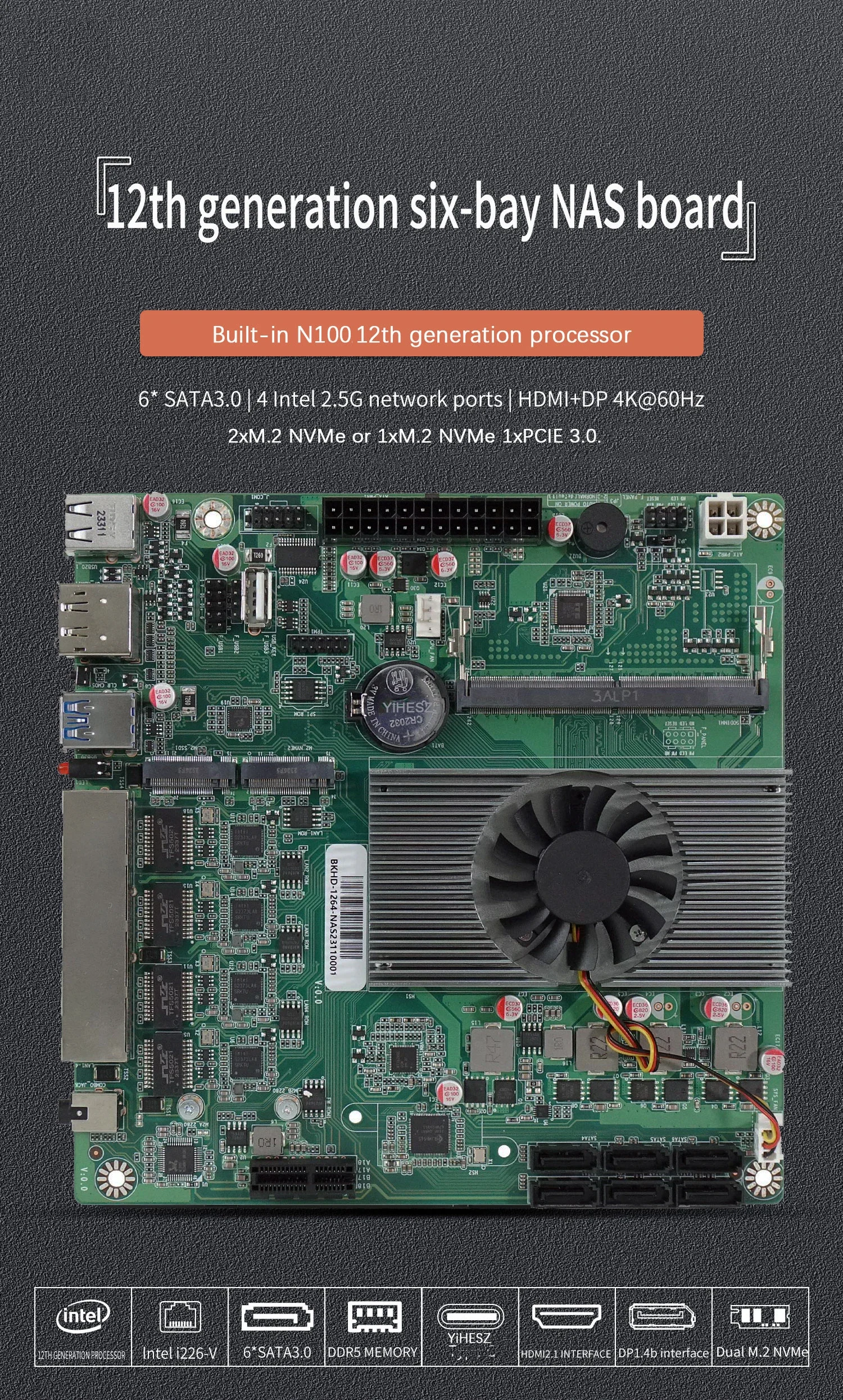 Comprar DIY NAS N100 placa base 4X Intel I226 2,5G 6 * SATA3.0 Mini ITX DDR5 17x17CM 2 * M.2 1XPCIE para servidor de almacenamiento NAS enrutador suave