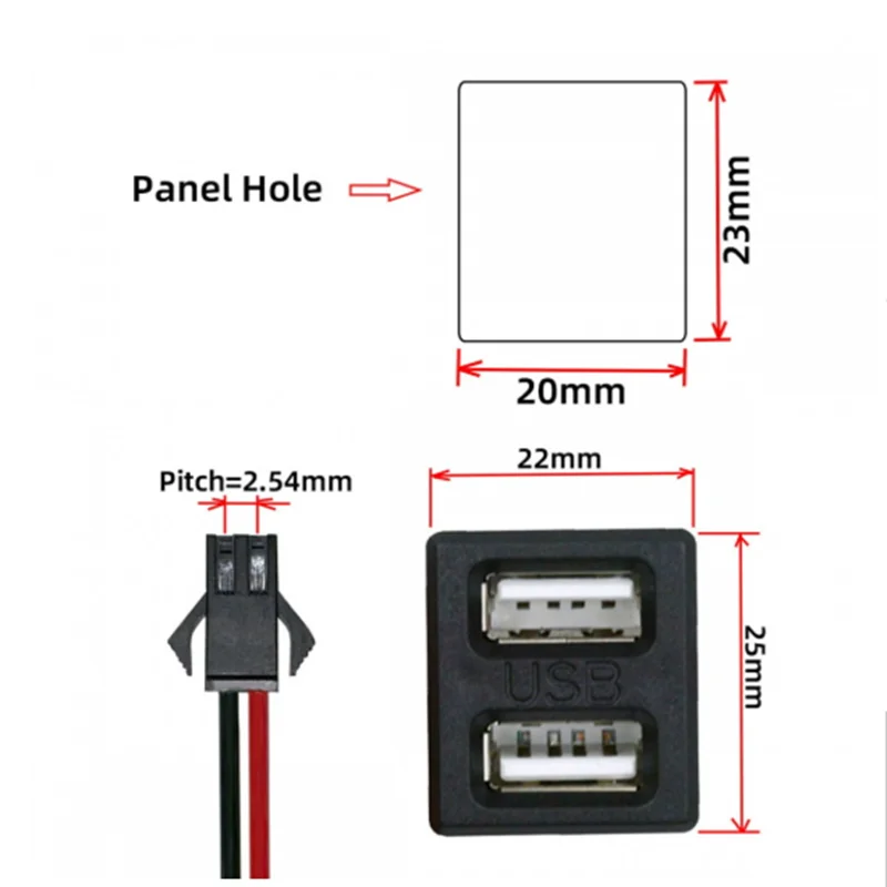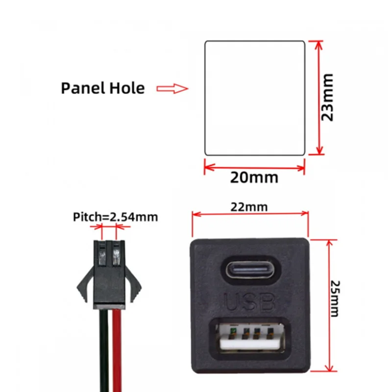 DIY OEM tipo A y tipo C hembra enchufe Horizontal a 2 pines Cable de cabecera paso=2,54 mm Tipo de montaje en pestillo Alimentación DC 5V