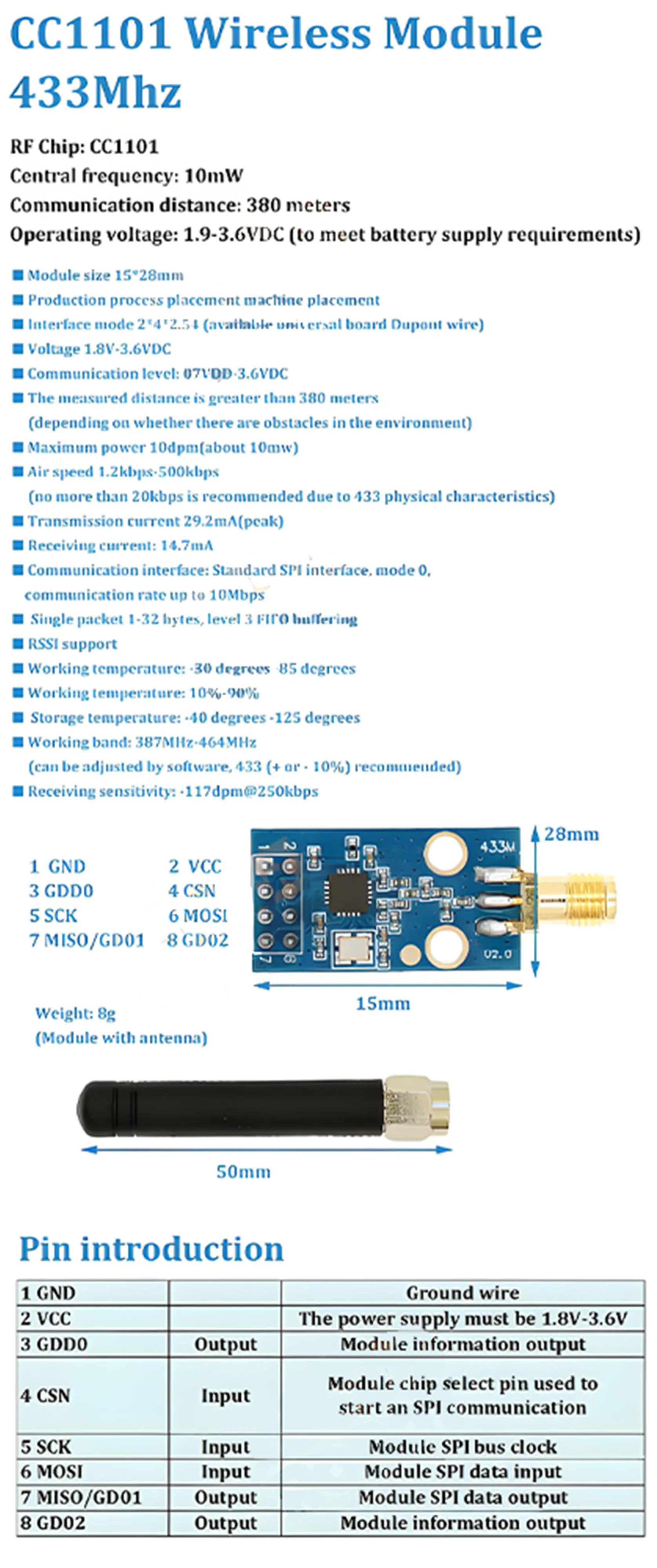 DIYUSER 2 uds 433MHz Kit de módulo transceptor inalámbrico de largo alcance con antena SMA CC1101 Chip para IoT/Control remoto