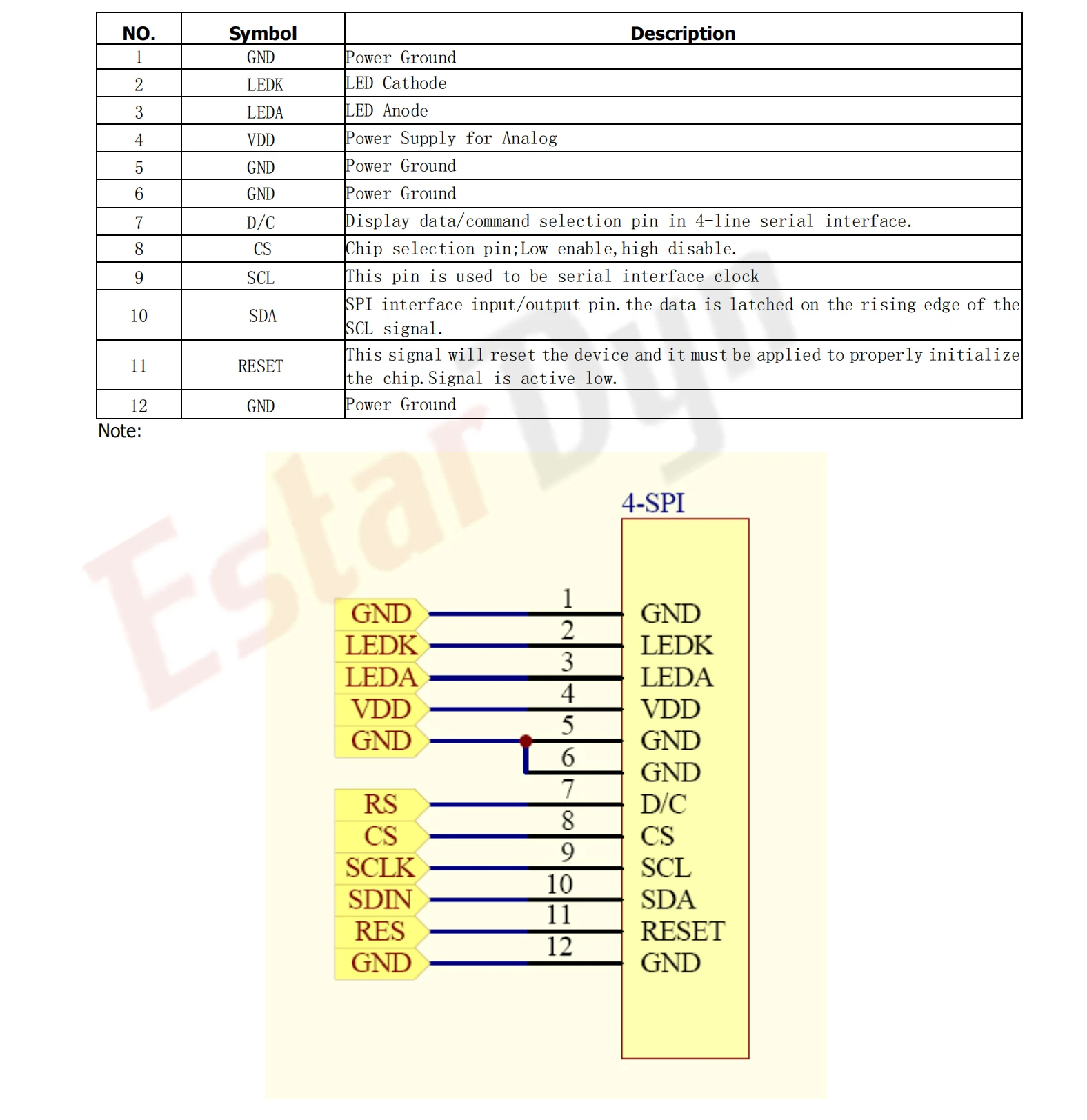 ●Fuente de alimentación de retroiluminación (pin LED): la fuente de alimentación máxima de retroiluminación es de 3,2 V.