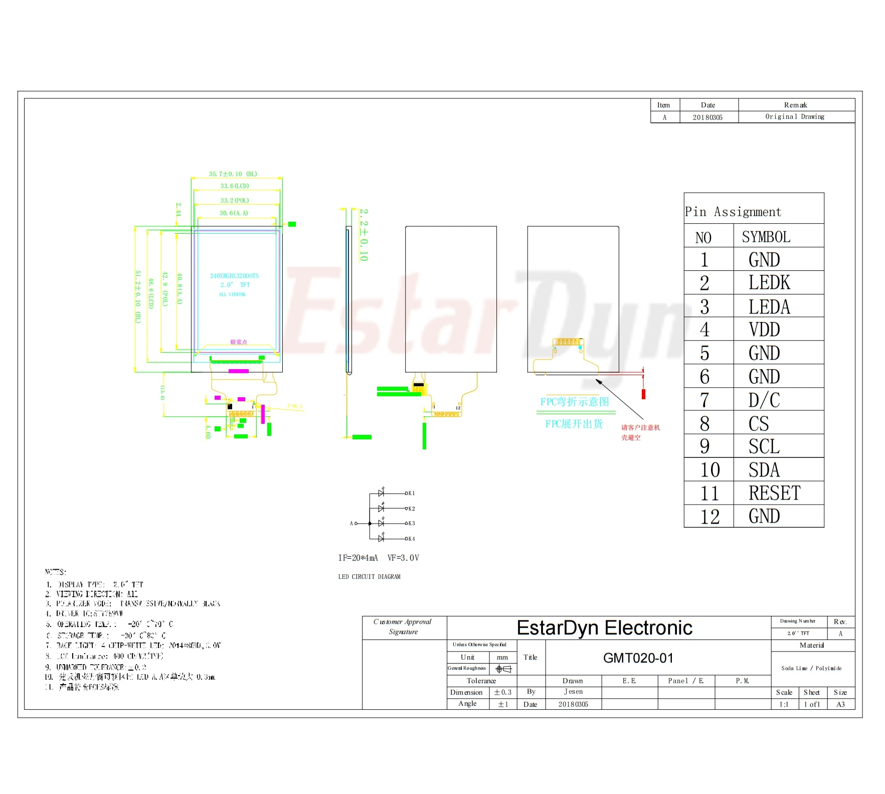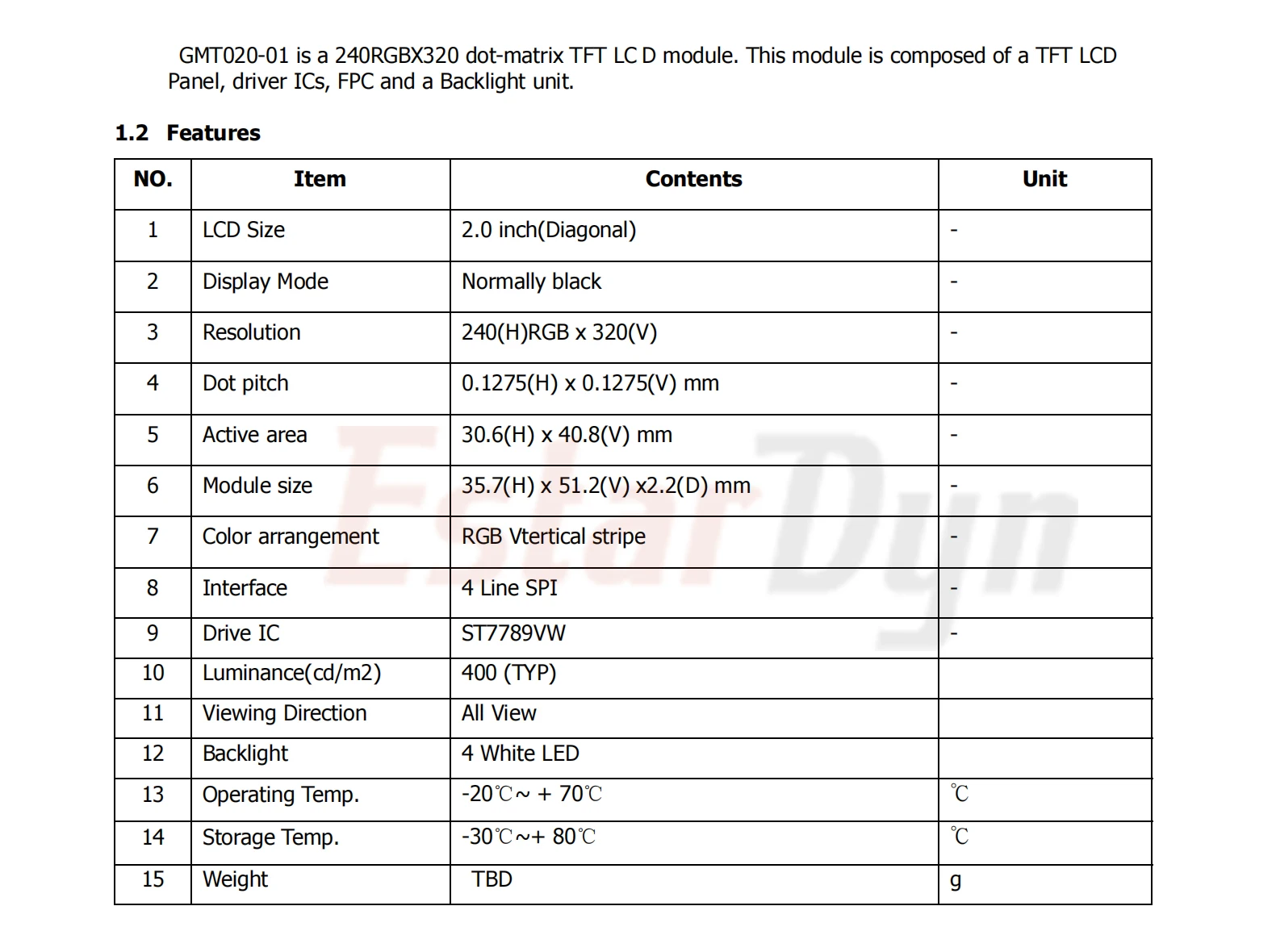 Módulo LCD TFT de 2,0 pulgadas: