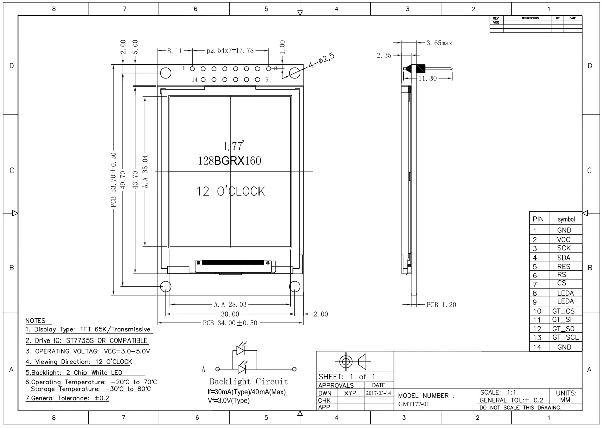 Módulo LCD TFT de 1,77 pulgadas: