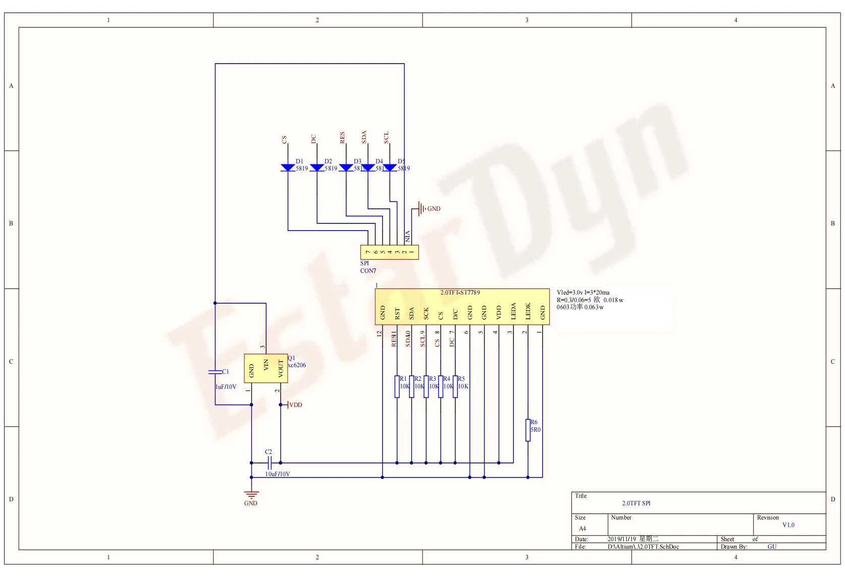 ●Fuente de alimentación TFT: la fuente de alimentación de la pantalla es de 2,8 3,3 V; recuerde no utilizar 5V