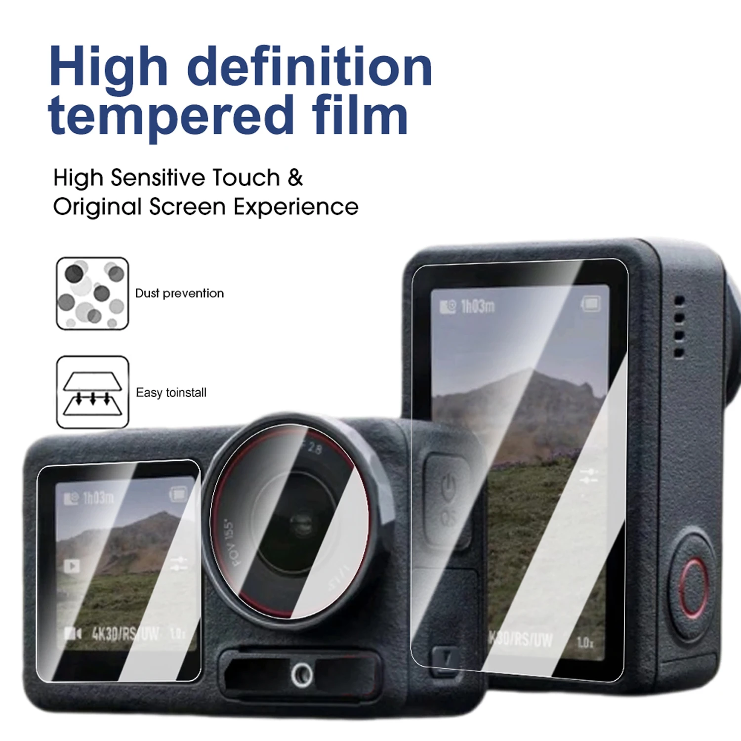 [9H HD]: Nuestra película templada ultra transparente adhesiva de posición Action 3/4/5 Pro con dureza de clase 9H proporciona claridad y protección superiores.Garantiza la calidad de alta resolución de la pantalla y proporciona una experiencia de disparo clara.