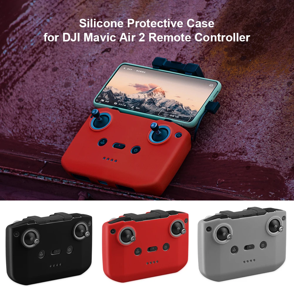 Funda protectora de silicona suave para DJI Mavic Air 2 accesorios de control remoto Característica: 1. Adopta material de silicona suave para evitar que objetos extraños choquen o rayen el cuerpo; 2. Diseño de costilla reforzada, se puede amasar a voluntad sin deformación; 3. La superficie está rociada con aceite, hermosa y cómoda y se siente cómoda; 4. Fácil de quitar e instalar.