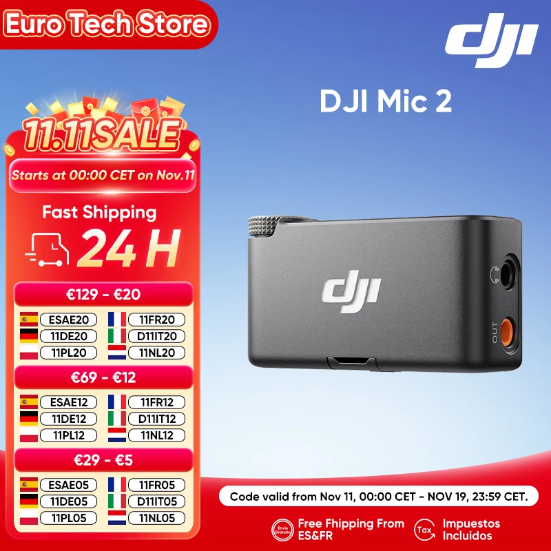 Comprar DJI-micrófono inalámbrico Lavalier, dispositivo con cancelación de ruido, 32 bits, 48kHz, disco interno flotante, rango de 250m, batería de 18h con estuche de carga