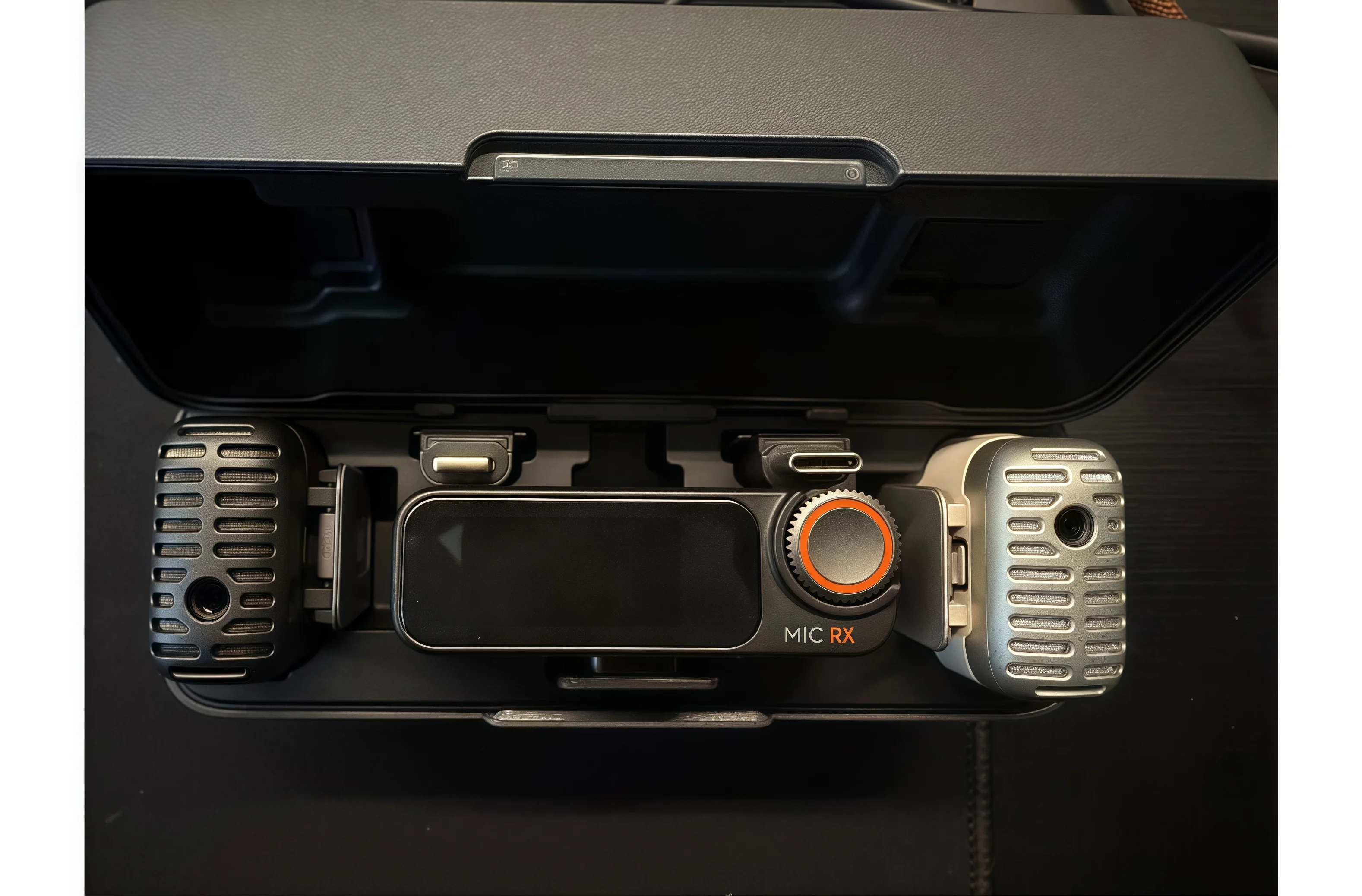 DJI Mic 2 opens automatically and is ready to use. The charging case automatically pairs the receiver and transmitter and charges them in real time.