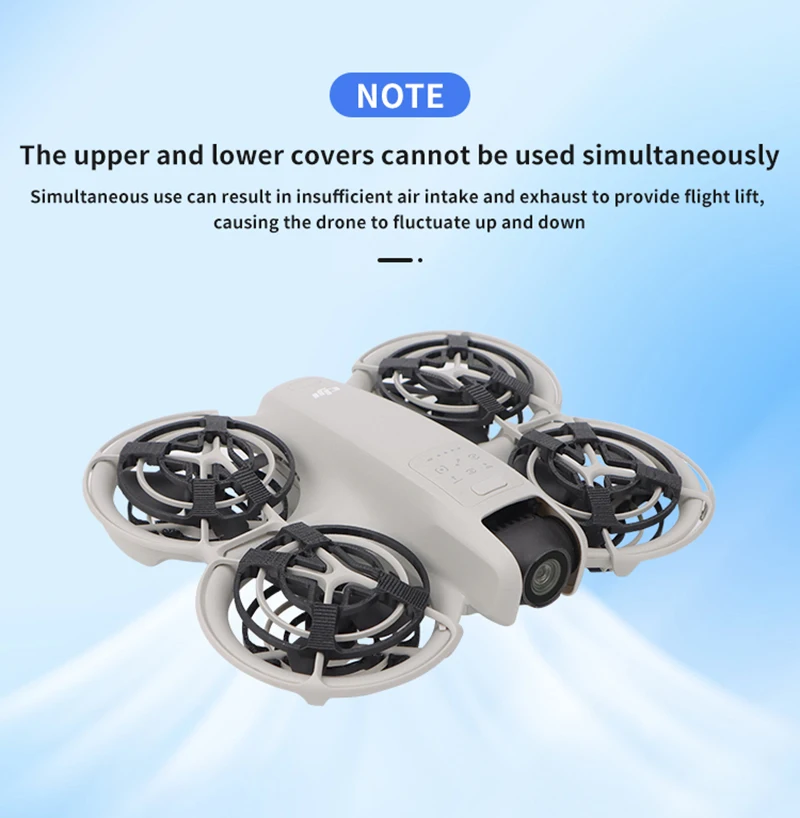 3.Nota: La cubierta superior y la cubierta inferior no se pueden usar al mismo tiempo, y el uso simultáneo hará que el volumen de aire de entrada y salida sea demasiado pequeño para proporcionar elevación de vuelo, y la aeronave subirá y bajará.