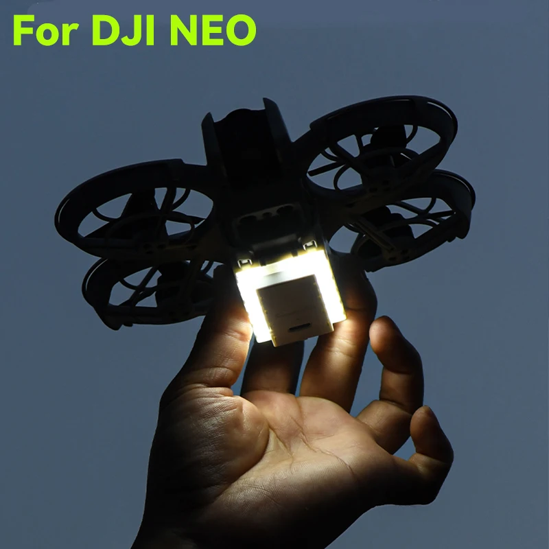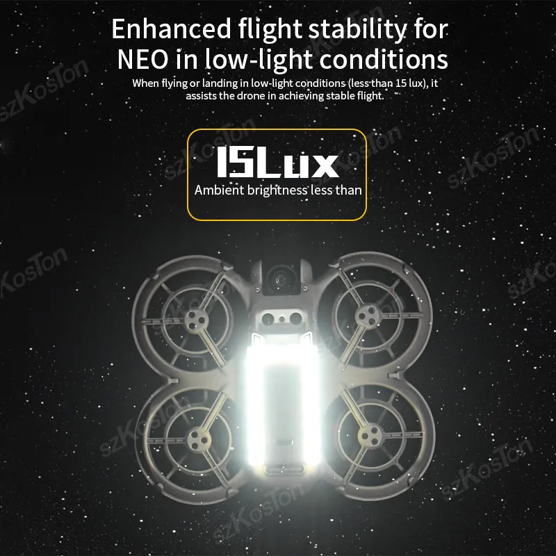 1.La luz nocturna con trípode está diseñada para el dron DJI NEO.El ajuste perfecto para el cuerpo curvo de DJI NEO le permite observar mejor su entorno cuando vuela, se despega o aterriza en la noche oscura.
