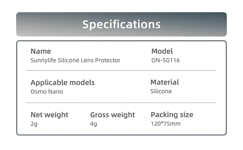 Fabricación precisa del molde, adaptada para adaptarse a la forma de la lente.Especialmente diseñado para Osmo Nano, no es fácil de separar.