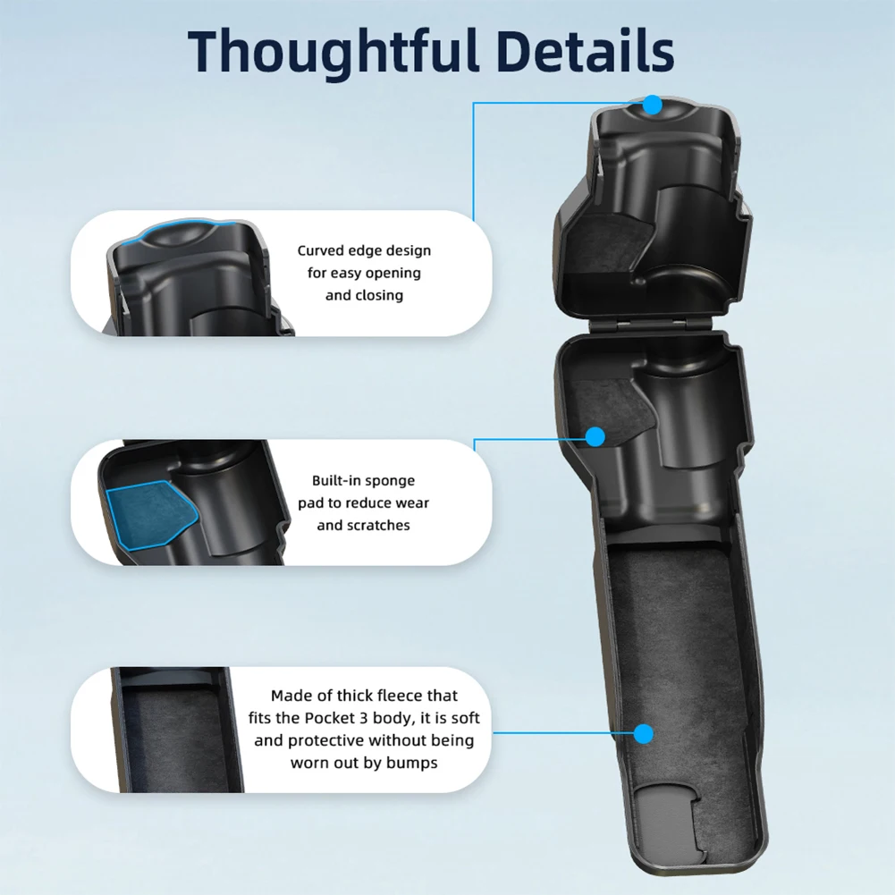 4.Movilidad manos libres:Utilice un cordón para llevar cómodamente la funda protectora del mango de la cámara cardán, liberando sus manos para viajar sin esfuerzo.