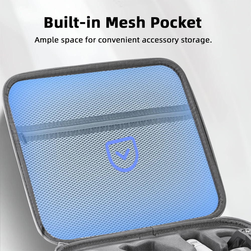 3.Interior espacioso:Con un gran bolsillo interno de malla, esta caja protectora de viaje proporciona un amplio espacio para organizar cuidadosamente todos los accesorios.