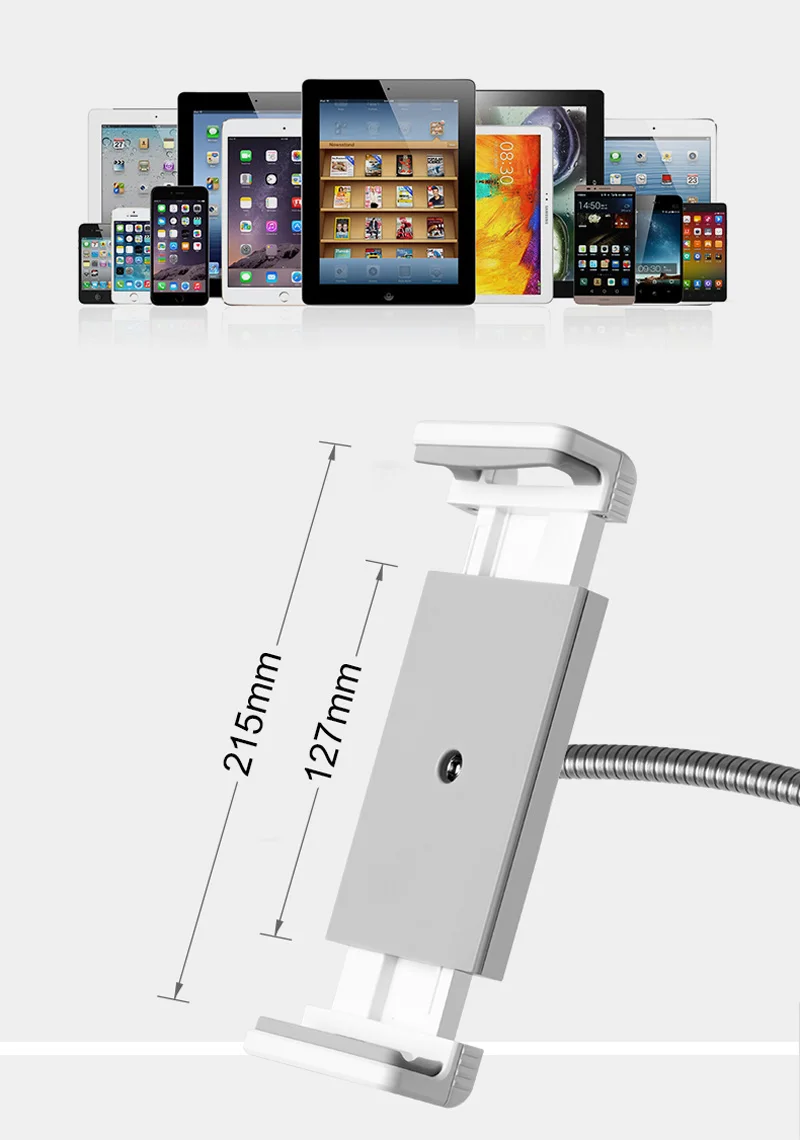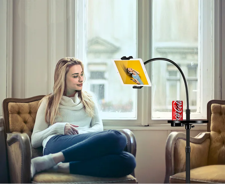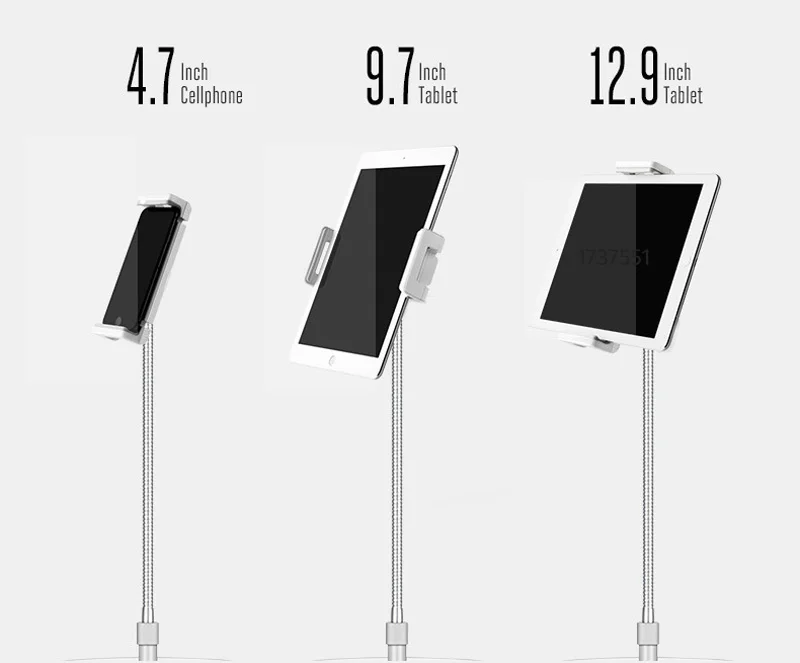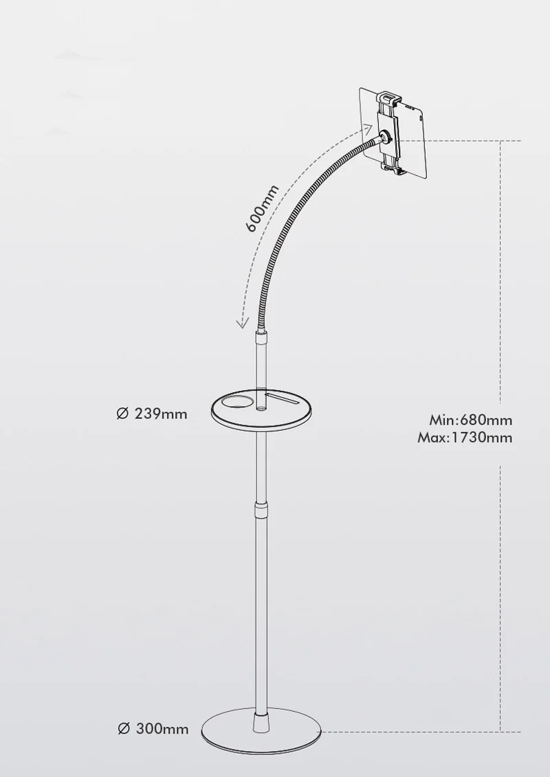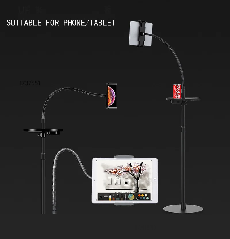 DL-9ST 10 "15" 15,6 "soporte de suelo para tableta soporte de aluminio con cuello de cisne soporte de montaje inclinable hacia arriba soporte para teléfonos inteligentes