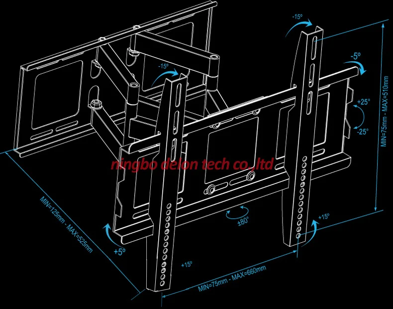 Comprar DL-D-109MT 80kg 75 "65" 55 "660x500 brazo oscilante retráctil de alta resistencia doble brazo movimiento completo lcd tv soporte de montaje en pared soporte led