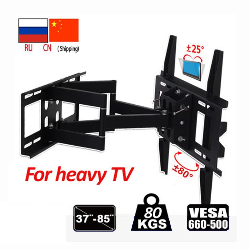 Comprar DL-D-109MT 80kg 75 "65" 55 "660x500 brazo oscilante retráctil de alta resistencia doble brazo movimiento completo lcd tv soporte de montaje en pared soporte led