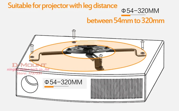 Universal, apto para la mayoría de proyectores con la distancia de patas más larga dentro de 305 mm.