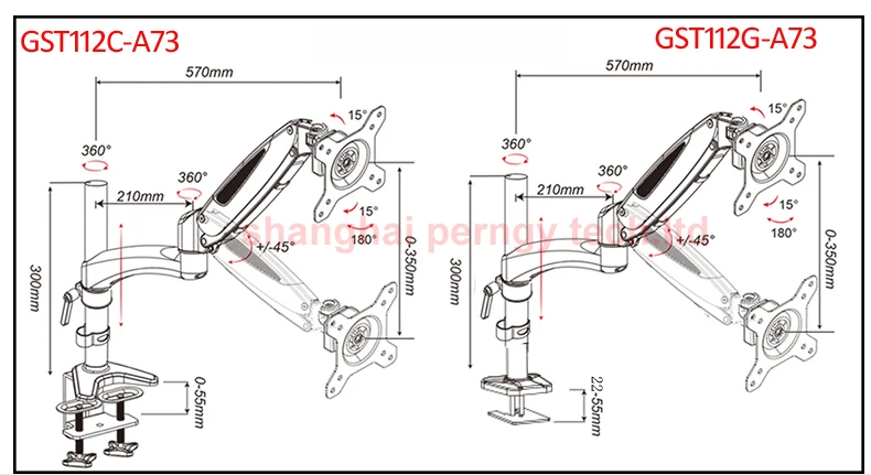 Comprar DL-GST112-A73 Base de abrazadera con ojal de 21,5 pulgadas, soporte de escritorio para Monitor, brazo con resorte de Gas, soporte de mesa de movimiento completo de 9-16kg para pantalla pesada