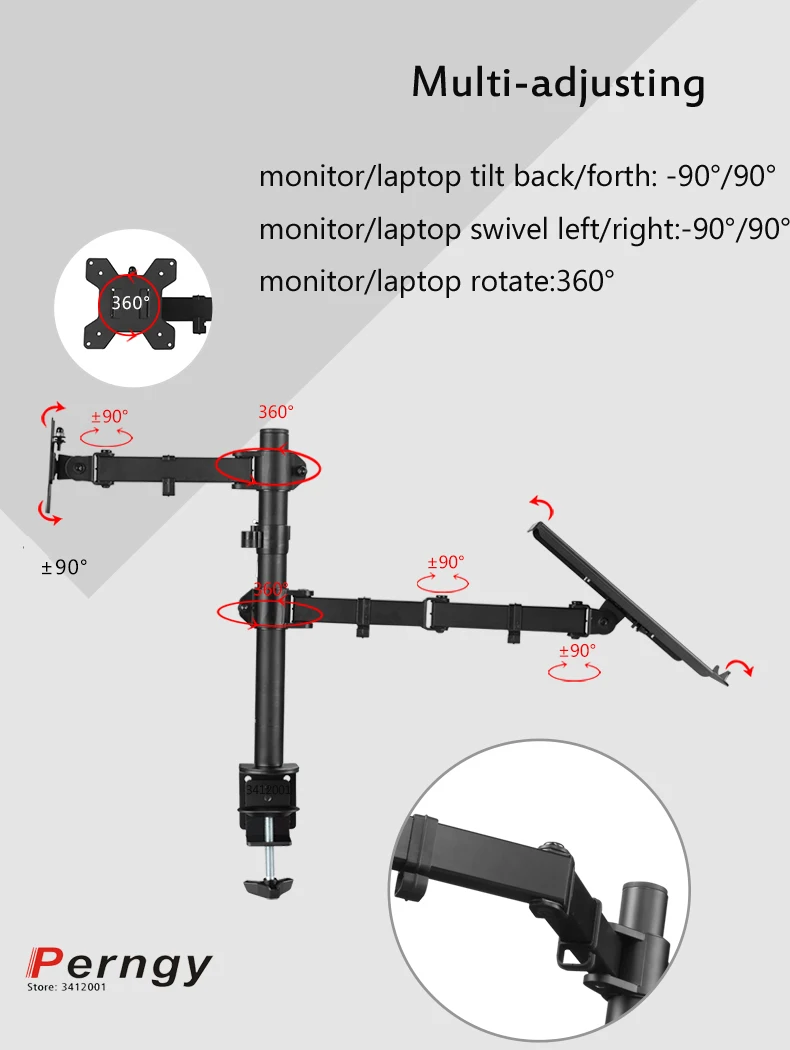 Montaje en movimiento completo: monitorea que se inclina, gira y gira fácilmente