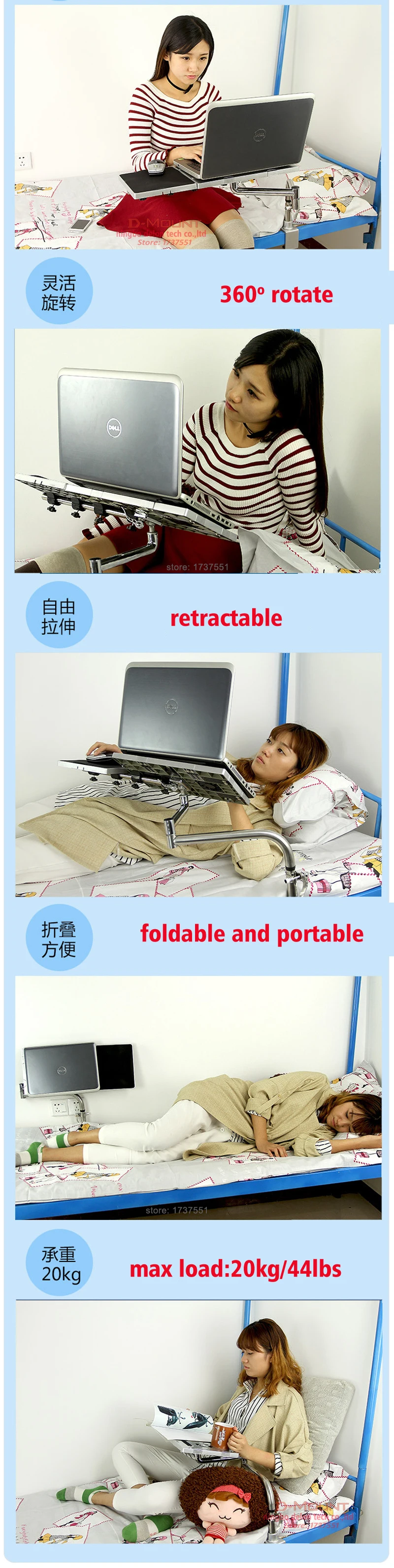 Comprar DL OK050-Soporte de escritorio para ordenador portátil, alfombrilla de ratón cuadrada multifuncional de 20kg, de acero inoxidable, con sujeción de movimiento completo para teclado/grande, OK051