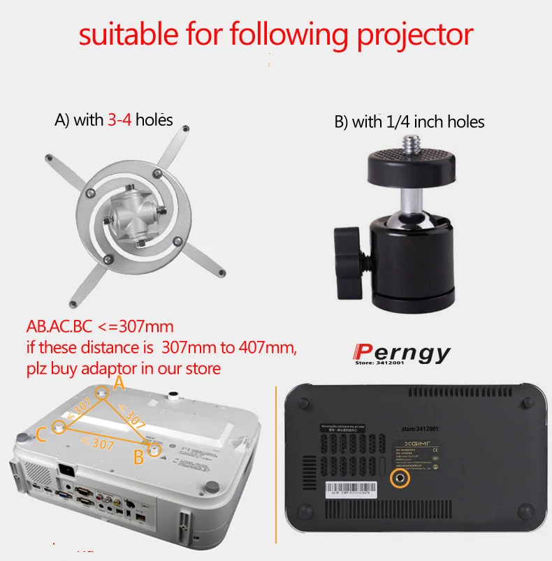 Bandeja de gancho para proyector con orificio de 3-4 piezas con distancia entre orificios de 307 mm