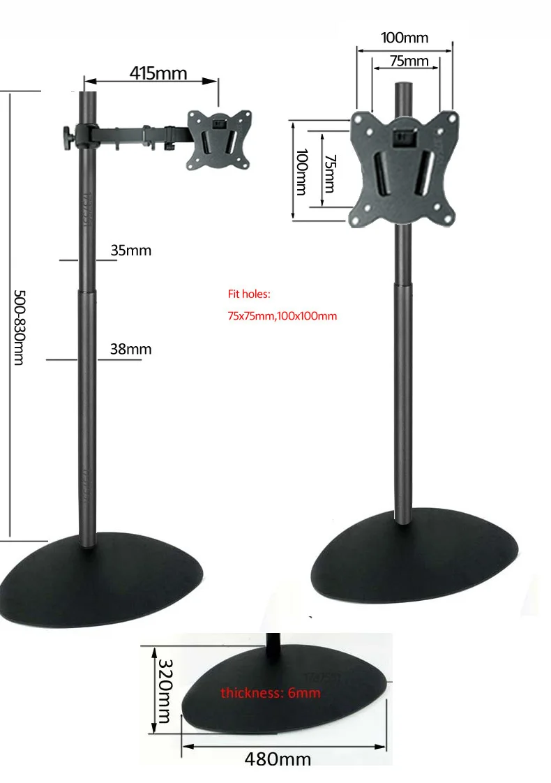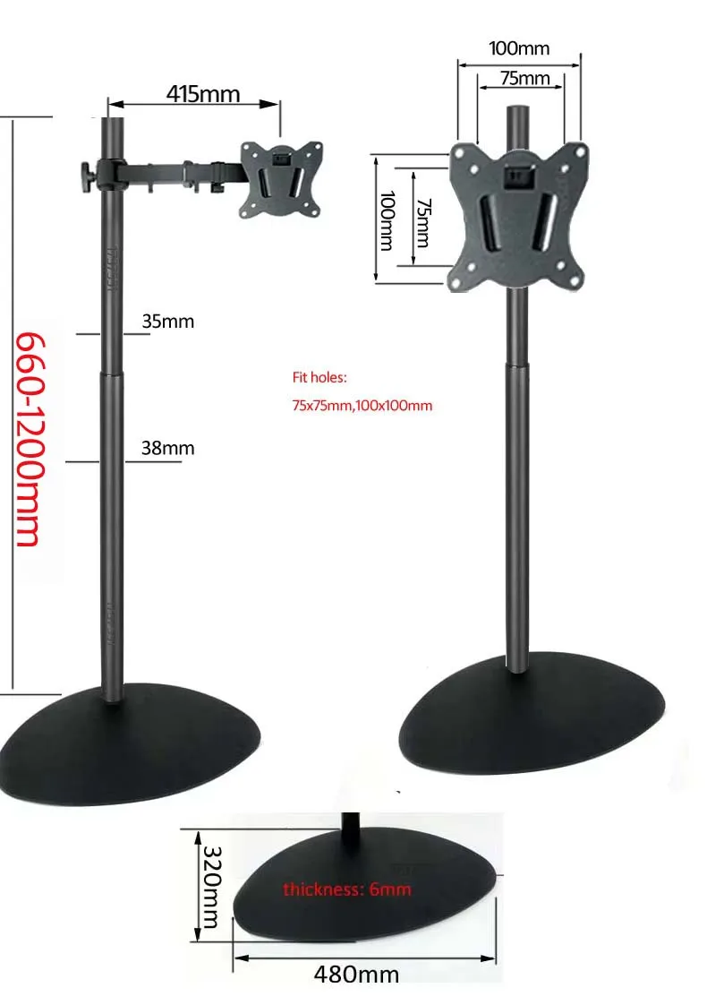 Comprar DL-R03-600 Soporte de escritorio para TV LCD de acero ajustable en altura de 60cm-120cm soporte de suelo para monitor base grande y pesada con poste 200X200 100x100