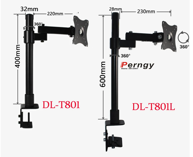 Comprar DL-T801L-Soporte de escritorio para monitor, brazo móvil para tv LCD, rotación de 360 grados, VESA, 75x75, 100x100, 11kg, 60cm