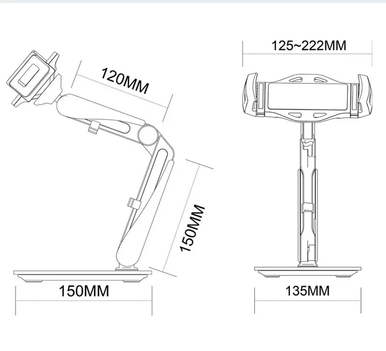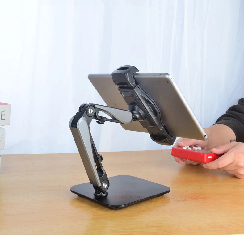 Comprar DL-TBD100 aluminio y metal 4,7 "-12,9" soporte para tableta y teléfono abrazadera de almohadilla blanca y negra en escritorio 125-220mm brazo largo de movimiento completo 1kg