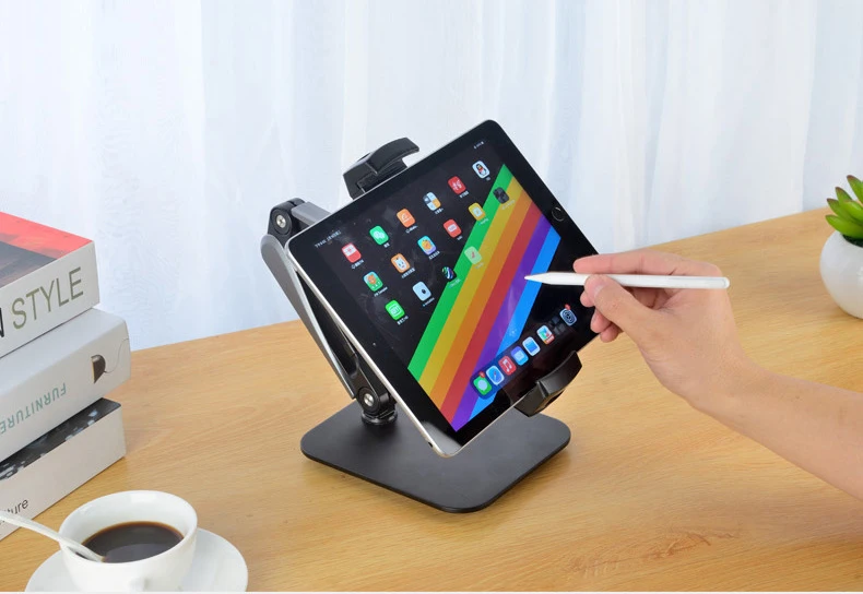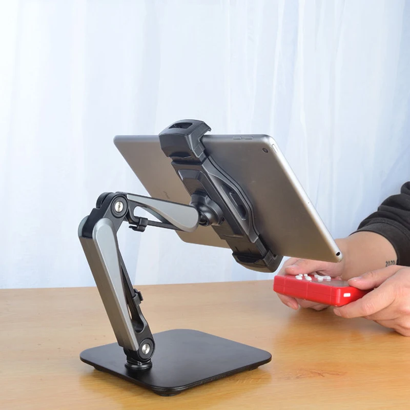 Comprar DL-TBD100 aluminio y metal 4,7 "-12,9" soporte para tableta y teléfono abrazadera de almohadilla blanca y negra en escritorio 125-220mm brazo largo de movimiento completo 1kg