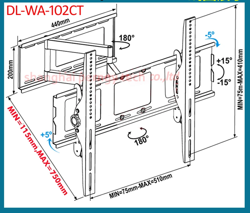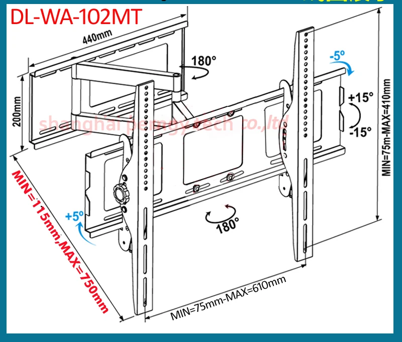 Comprar DL-WA-102CT 60KG 55 "42" 3 brazos retráctil movimiento completo lcd soporte montado en la pared 60KG fuerte lcd 180 grados giratorio tv rack