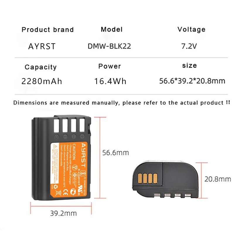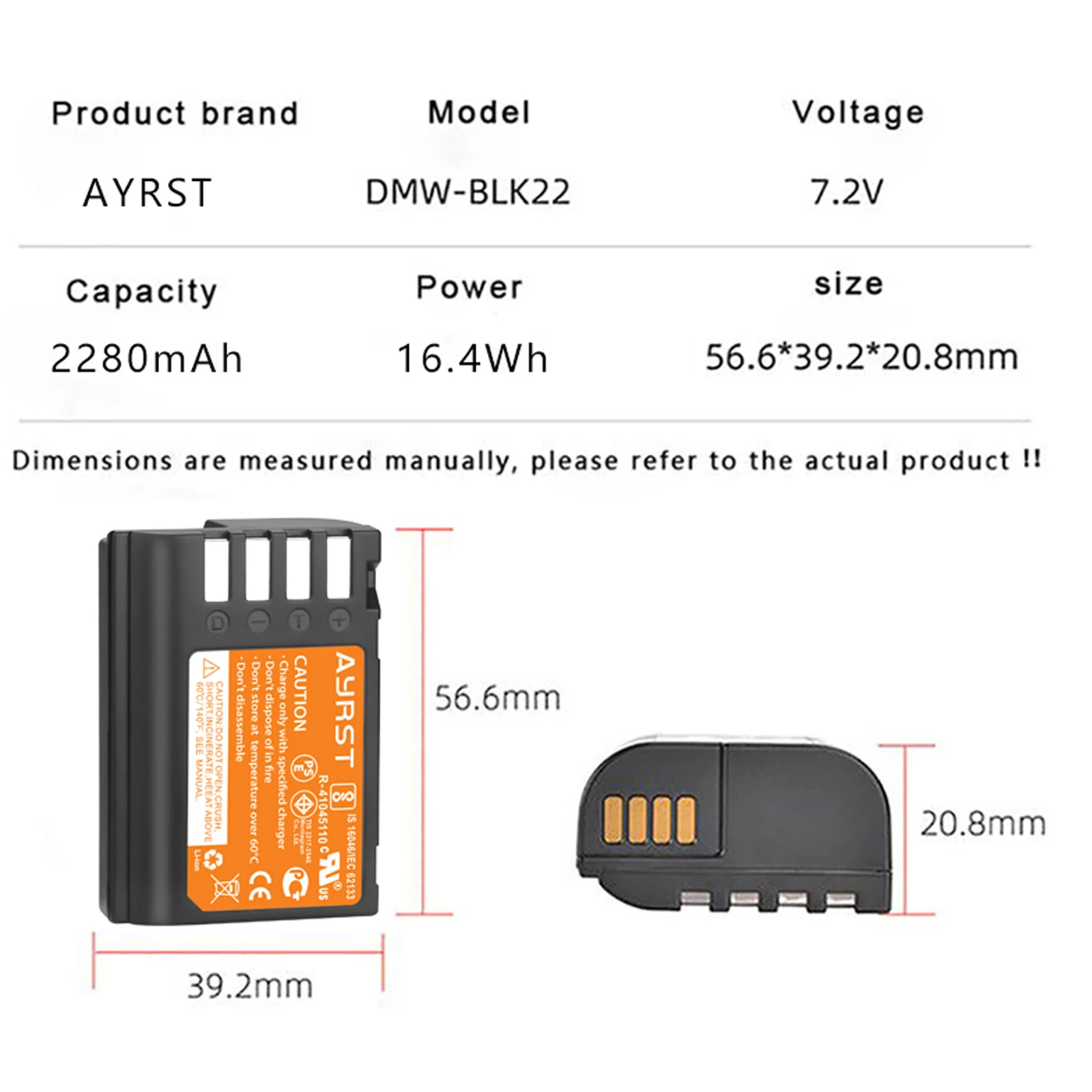 DMW-BLK22 Battery 2280mAh for Panasonic LUMIX GH5 / S5, LUMIX GH5 II, S5 II, GH7, GH6, S9, S9 II, S5 IIX