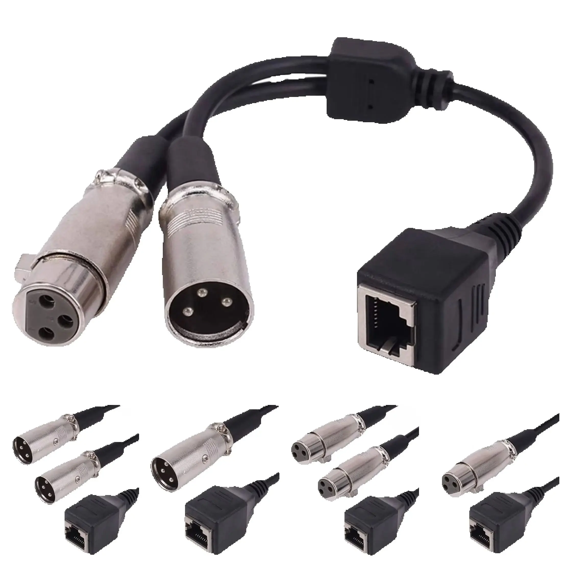 Comprar Doble XLR 3 pines macho y hembra a RJ45 interfaz de red de Audio transmisión de señal de Audio Cable corto RJ45 a XLR 25cm