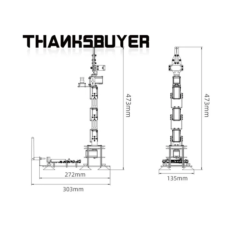 - Grado de libertad (DOF) del brazo robótico: 5 grados de libertad + pinza