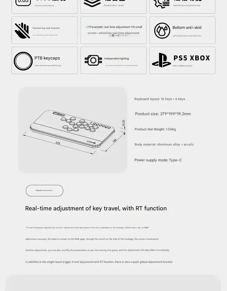 DOIO HITBOX KBGM-H02HE interruptor magnético teclado de aleación de aluminio nuevo teclado de juego ergonómico PBT compatible con PS4 PS5 Switch PC Steam