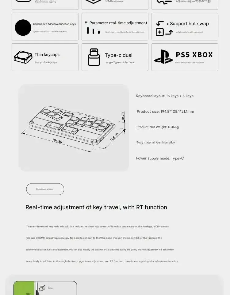 DOIO HITBOX KBHX-01HE PRO interruptor magnético teclado de aleación de aluminio nuevo teclado ergonómico PBT compatible con PS4 5 interruptor PC Steam