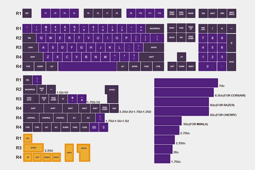 Comprar Domikey SA abs doubleshot keycap Gas Attack para mx stem keyboard poker 87 104 gh60 xd64 xd68 xd84 xd96 xd75 xd87 púrpura y amarillo