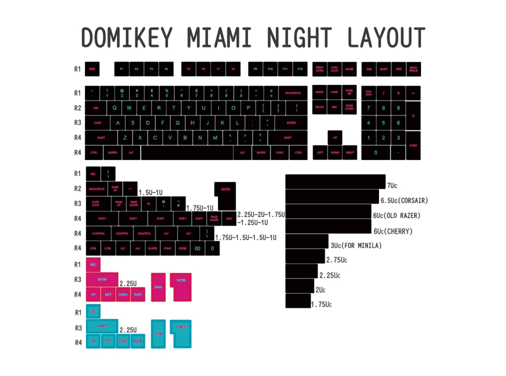 Comprar Domikey SA abs doubleshot keycap Miami Night todo en uno para mx stem keyboard poker 87 104 BM60 BM65 BM68 gh60 xd64 xd68 xd87