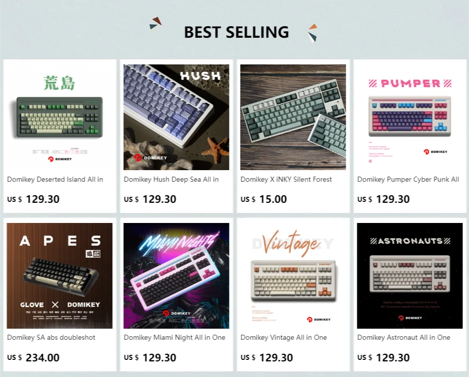 Juego de teclas Domikey Cherry Profile DoubleshotsESPECIFICACIONESDomikeyPerfil de Cereza (esculpido 1-1-2-3-4-4)Compatible con Cherry MX y clonesPlástico ABSLeyendas dobles \ Tripleshot Jan LegendsFondo rayado