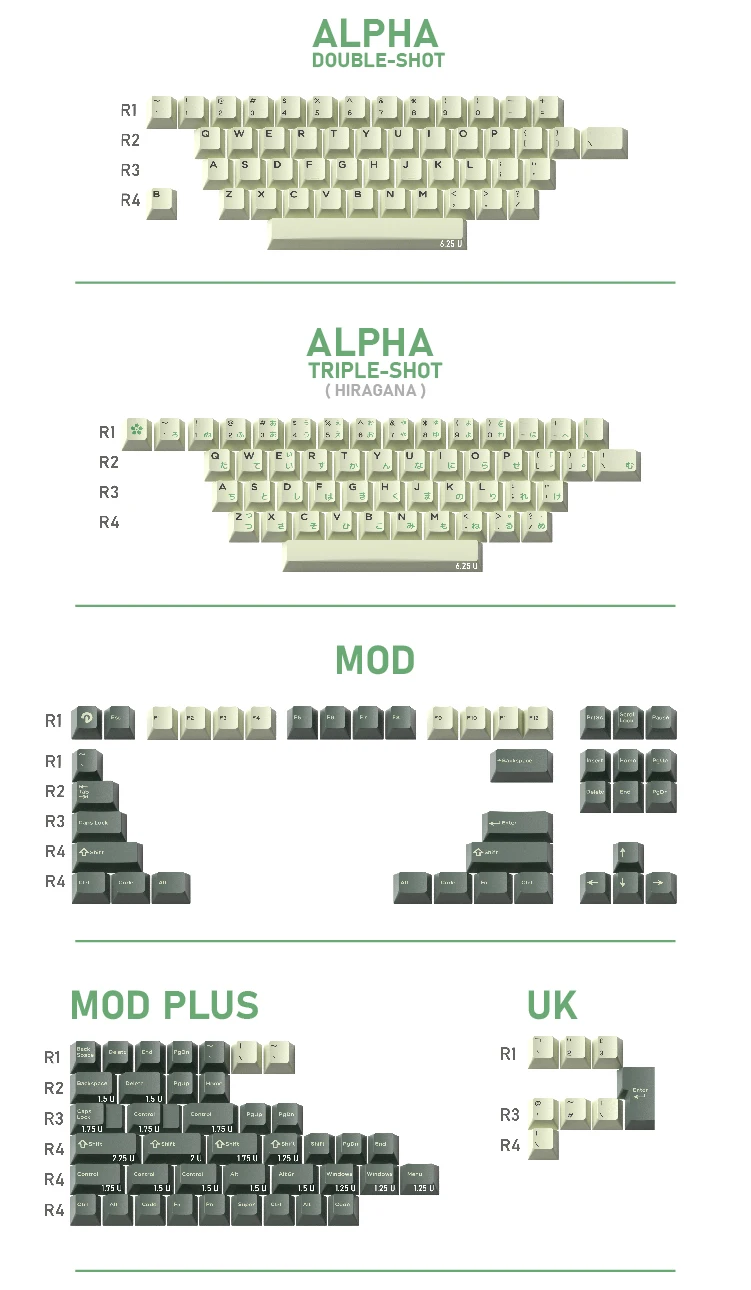 Juego de teclas Domikey Cherry Profile DoubleshotsESPECIFICACIONESDomikeyPerfil de Cereza (esculpido 1-1-2-3-4-4)Compatible con Cherry MX y clonesPlástico ABSLeyendas dobles \ Tripleshot Jan LegendsFondo rayado
