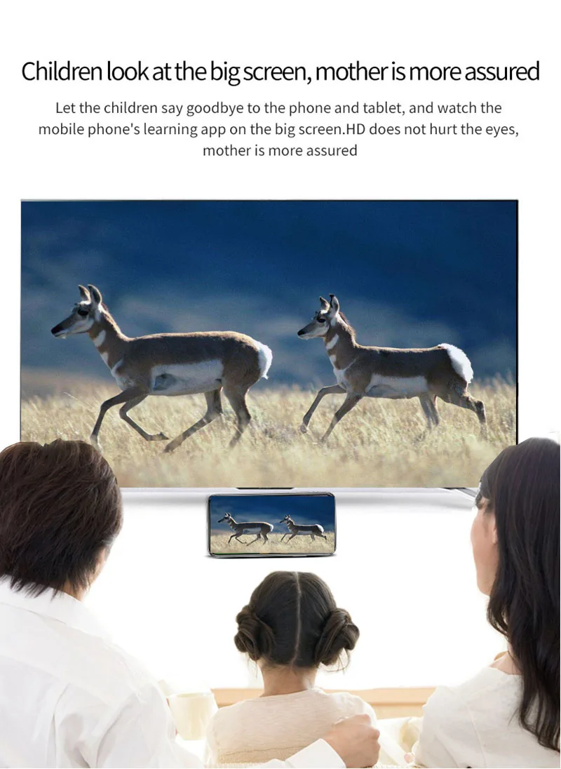 Transmite el contenido del teléfono a un televisor/HDMI compatible con proyector para compartir imágenes, música, vídeos, fotos, documentos, etc.
