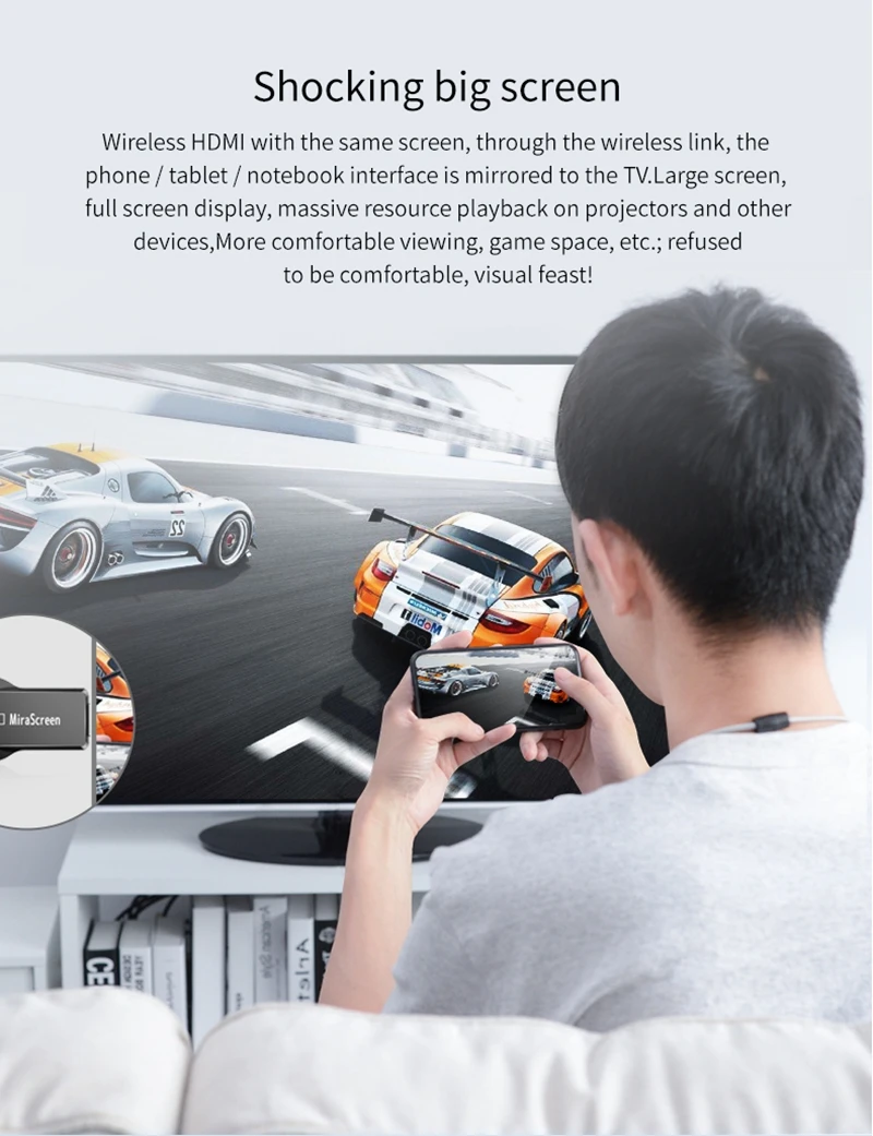 Adecuado para teléfonos con sistemas Android 6,0 + con función "Screen Mirroring / Screen Sharing o Smart View", etc.