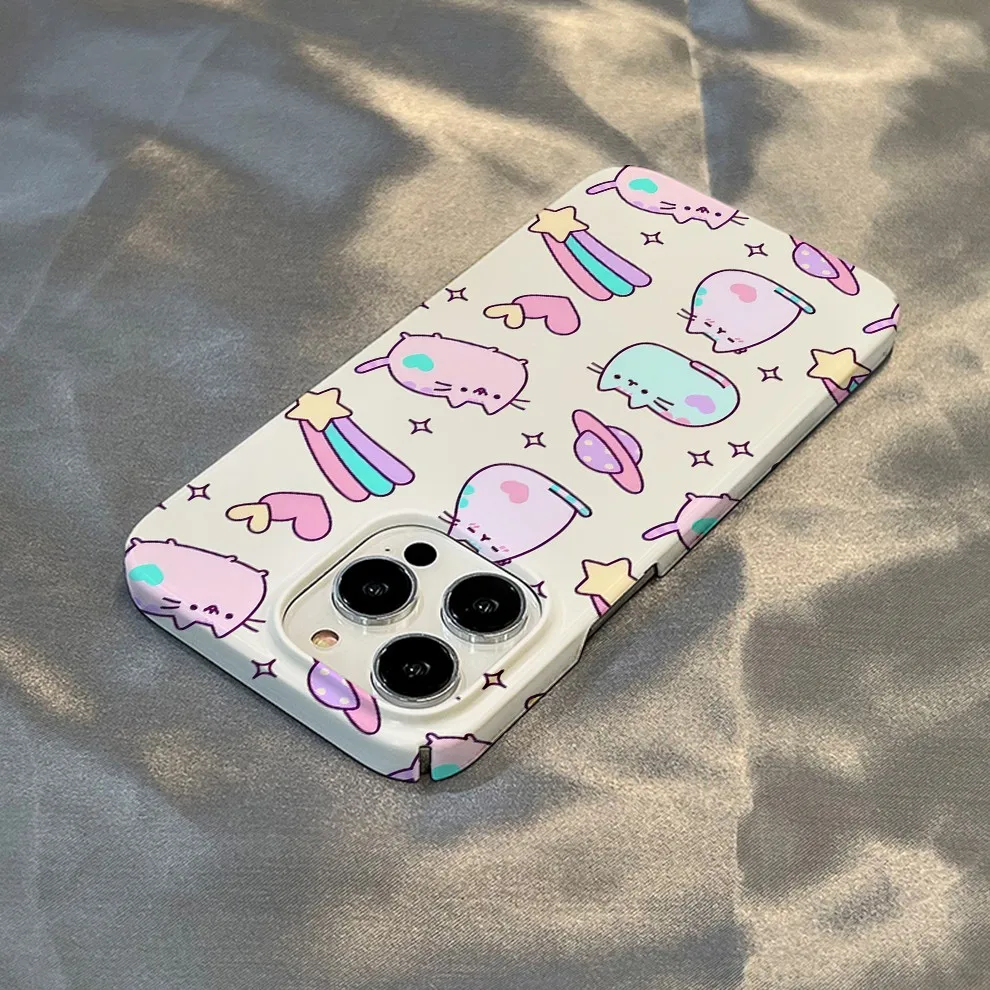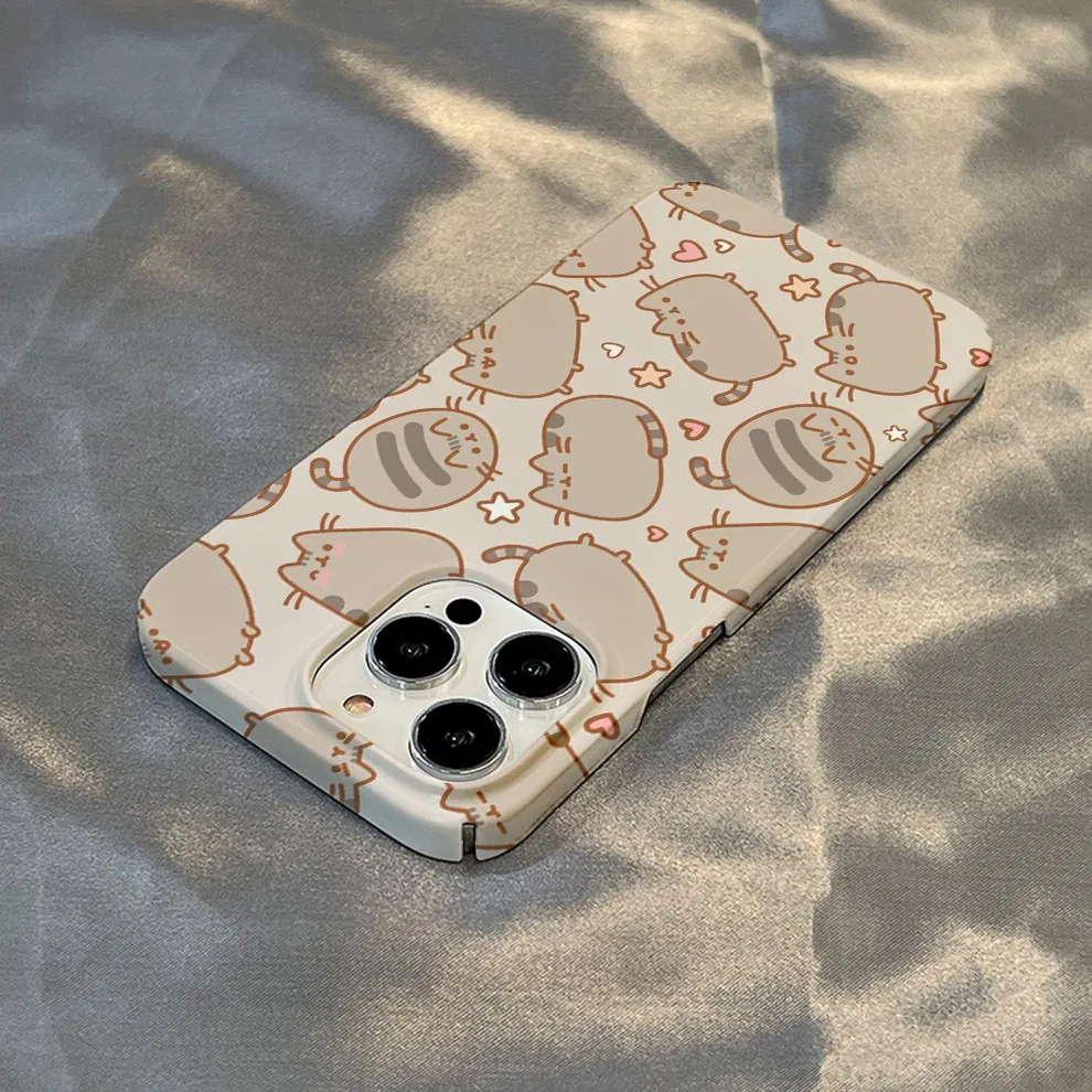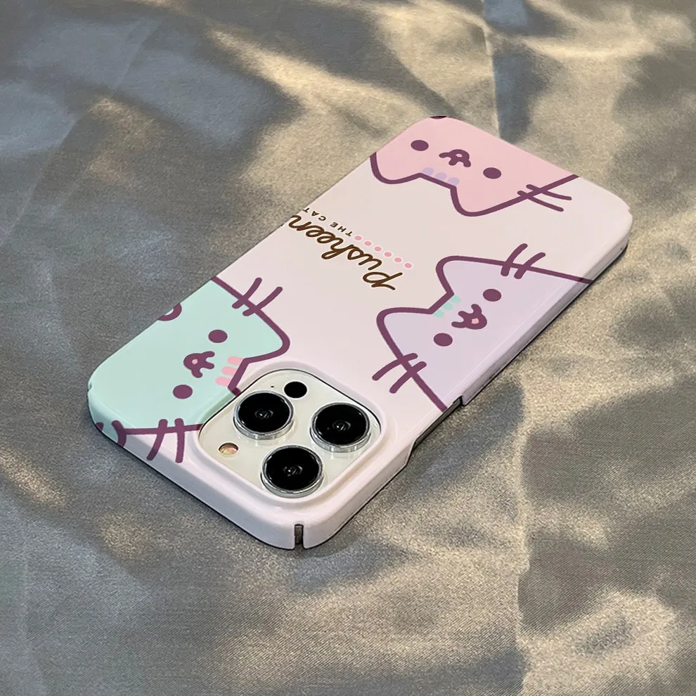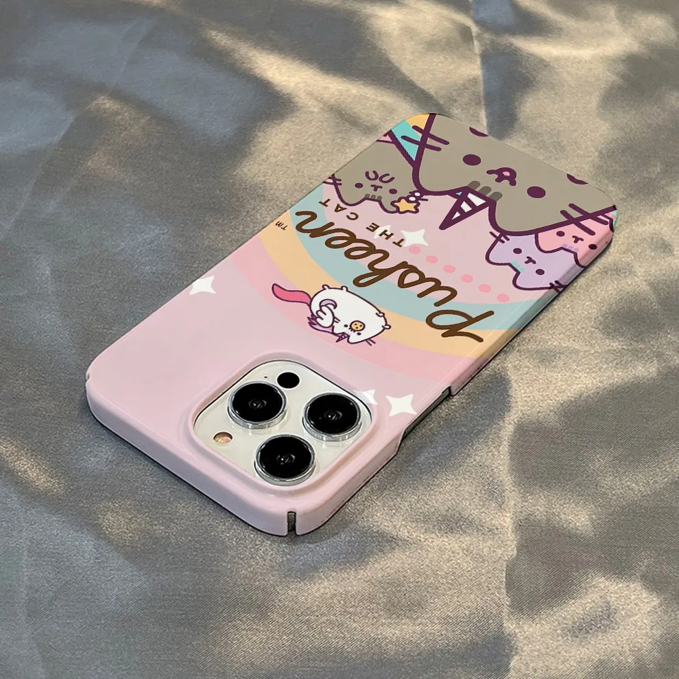 Donuts de dibujos animados Pusheen Cat funda de teléfono para iPhone 16 15 14 13 12 11 Pro Max XS XR XSMax 6 7 8 Plus cubierta dura HD brillante para PC