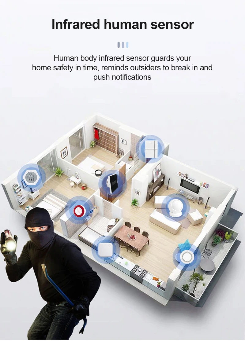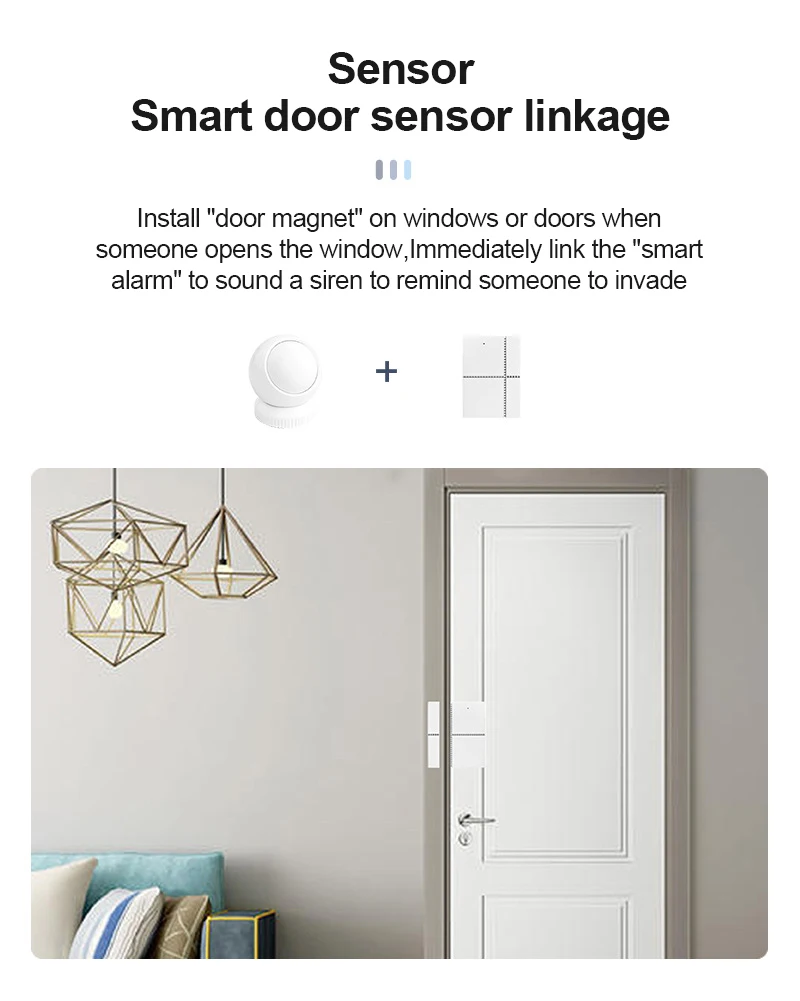 Doodle elegante altamente sensible antirrobo eficiente conectividad inalámbrica inteligente Integración de teléfono inteligente Sensor de automatización del hogar