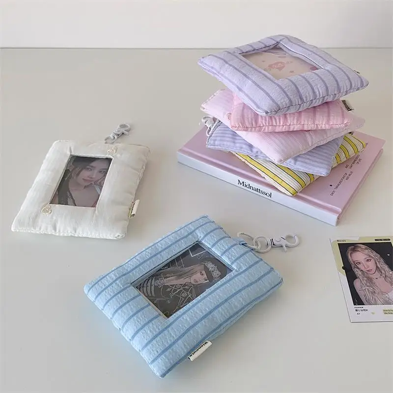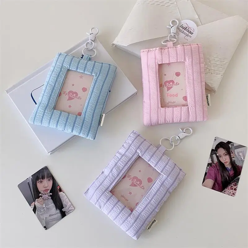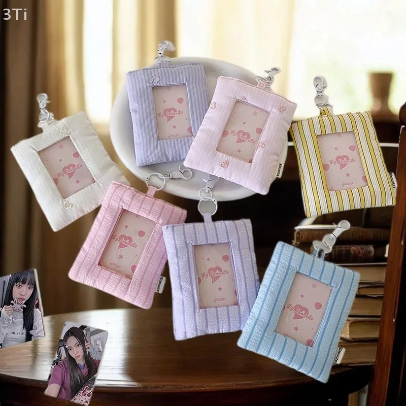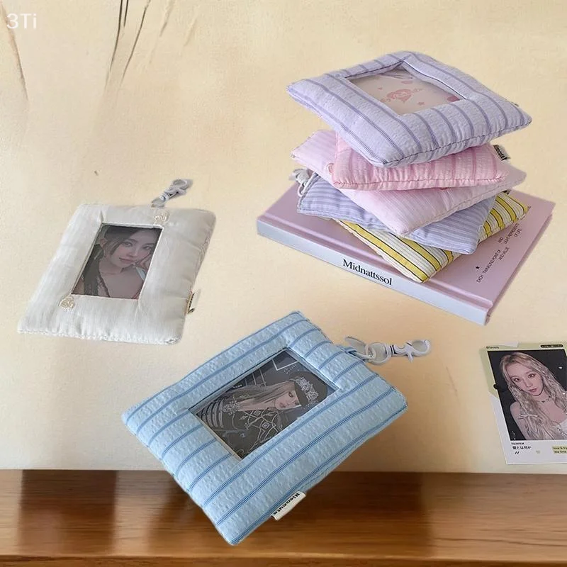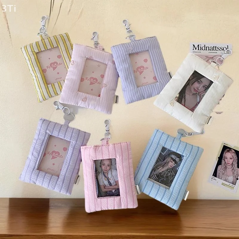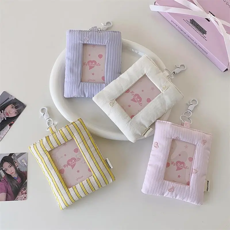 Comprar Dopamina-tarjetero de amor a rayas acolchado, soporte para sesión fotográfica, almacenamiento de exhibición de fotos de ídolo, funda protectora, llavero, colgante, bolso