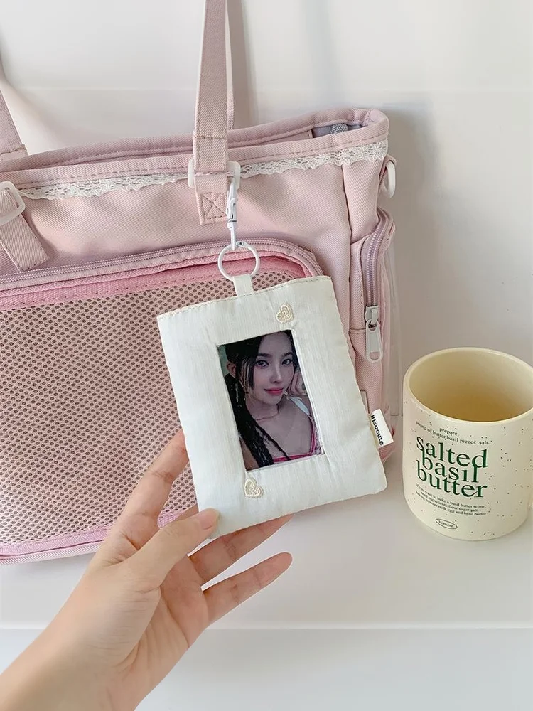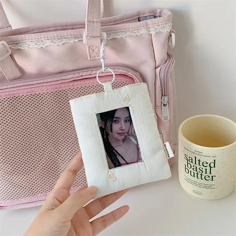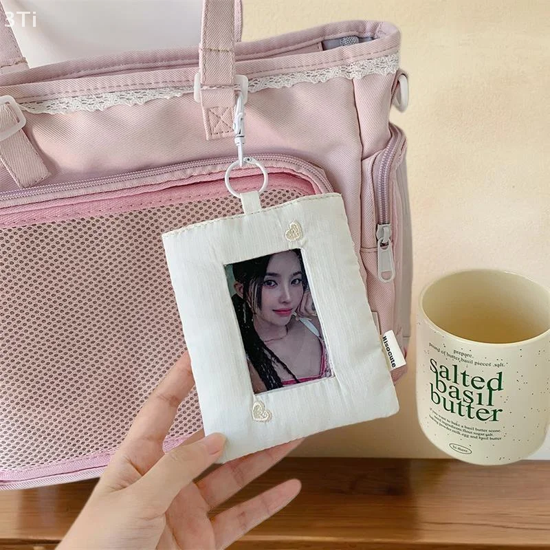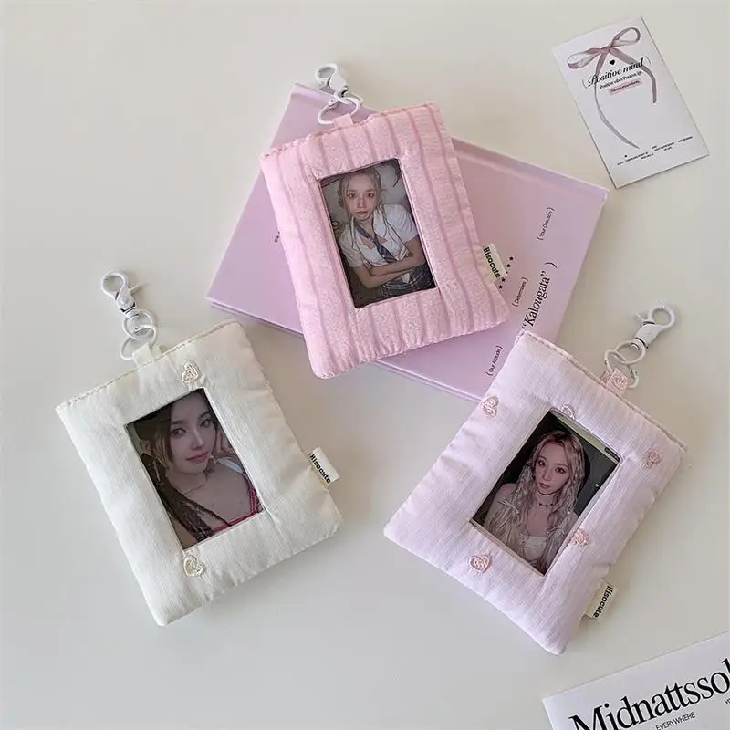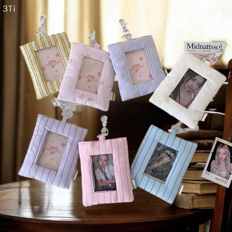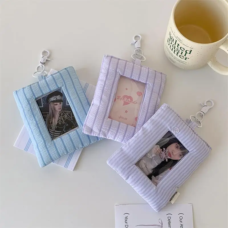Comprar Dopamina-tarjetero de amor a rayas acolchado, soporte para sesión fotográfica, almacenamiento de exhibición de fotos de ídolo, funda protectora, llavero, colgante, bolso