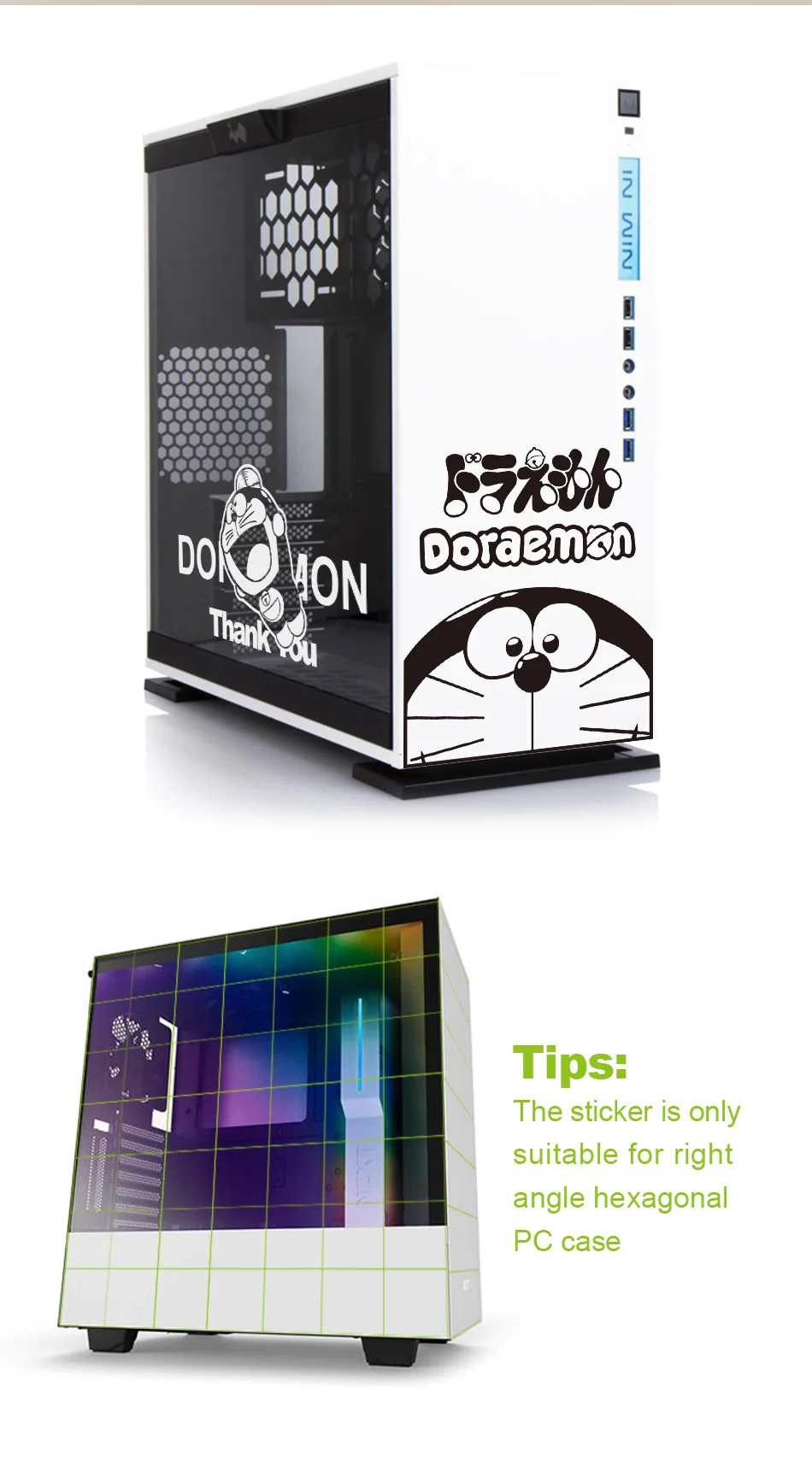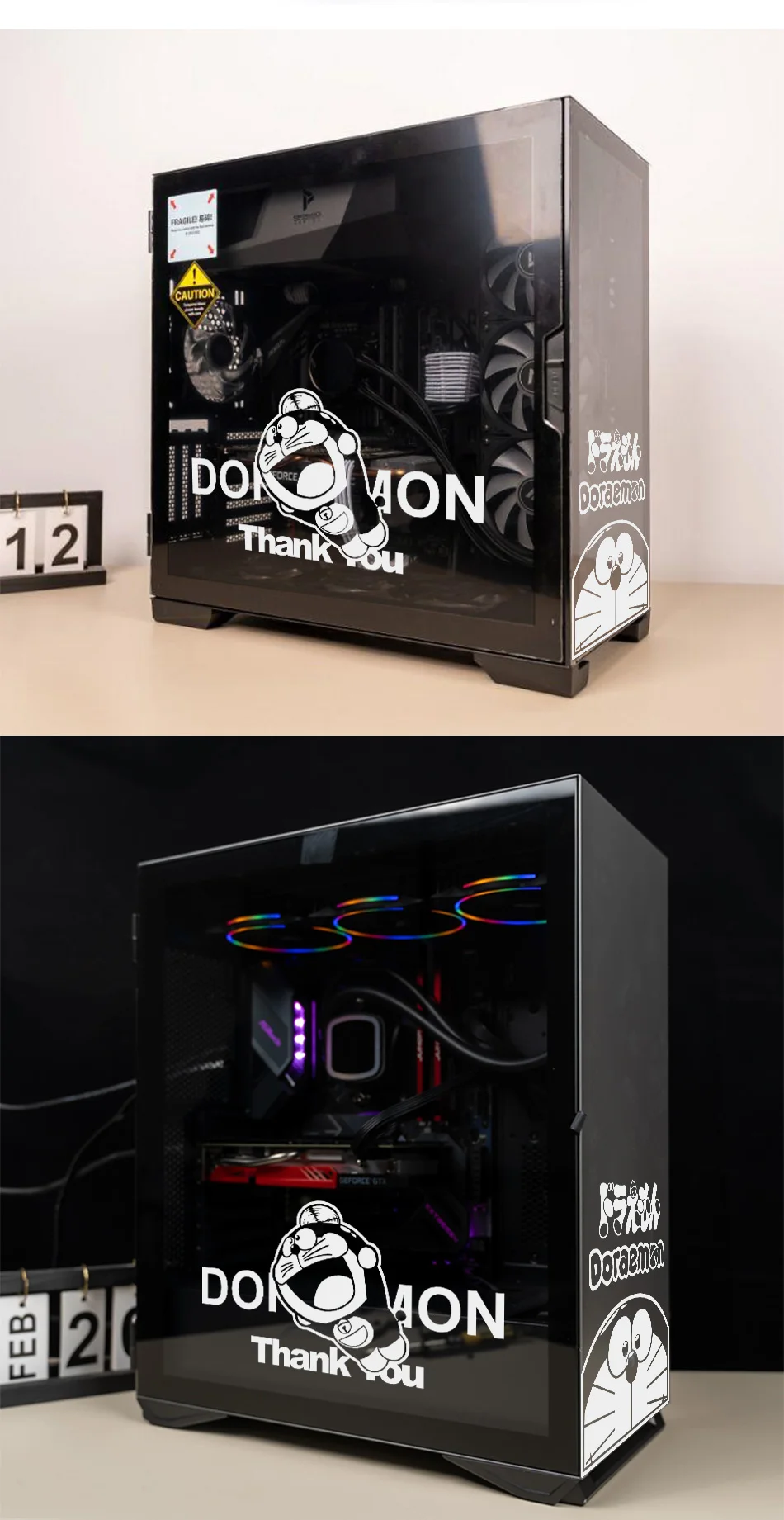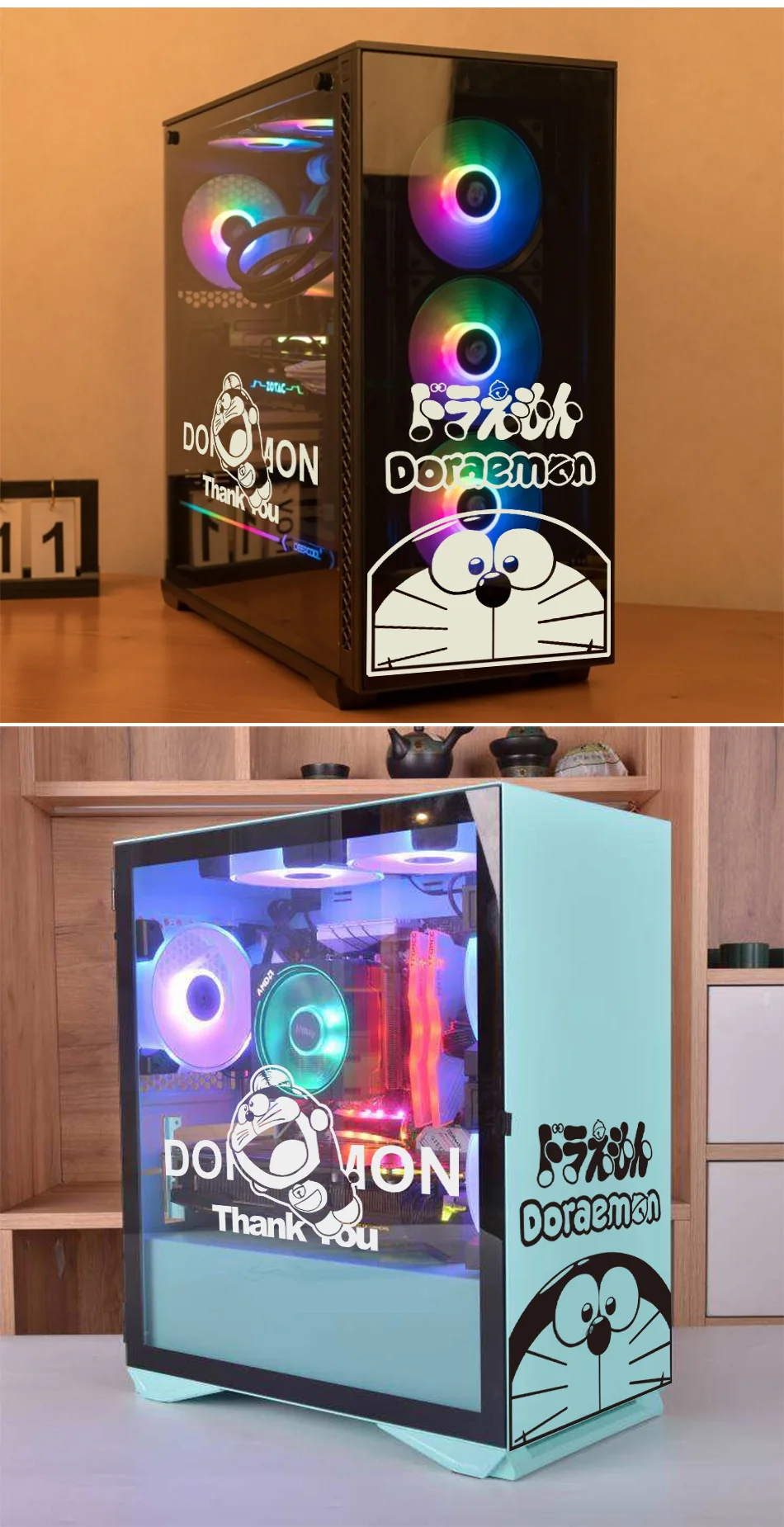 Comprar Doraemon-pegatinas de vinilo de dibujos animados para carcasa de PC, calcomanías de decoración de Anime con personalidad para piel de chasis de computadora Atx, pegatina hueca
